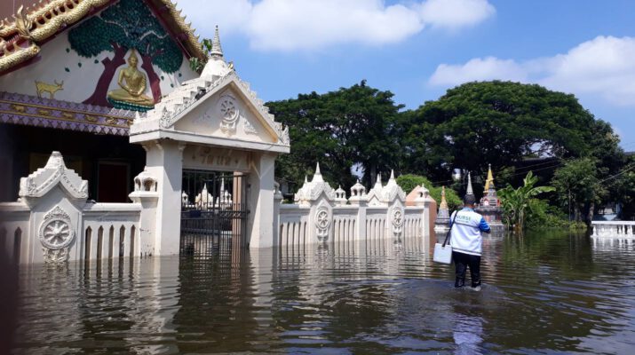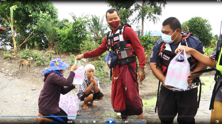 สุพรรณบุรี คุณพระช่วยครูบาบุญล้อมนำทีมลงเรือแจกข้าวกล่องน้ำดื่มผู้ประสบอุทกภัย