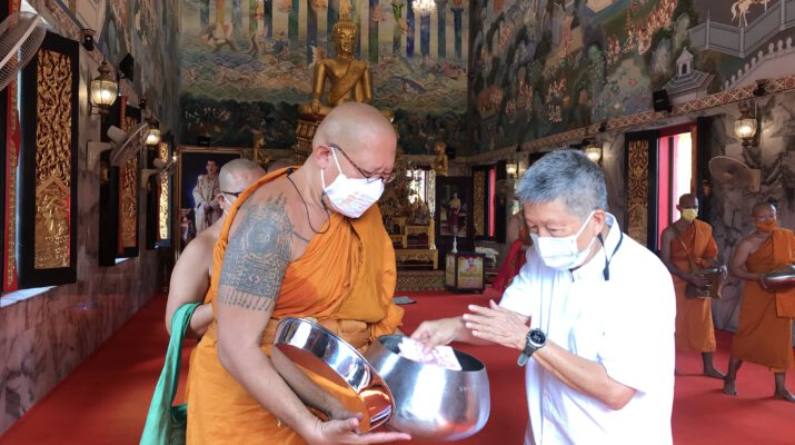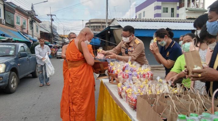 ชัยนาท นายอำเภอหันคาร่วมตักบาตรข้าวสาร อาหารแห้ง