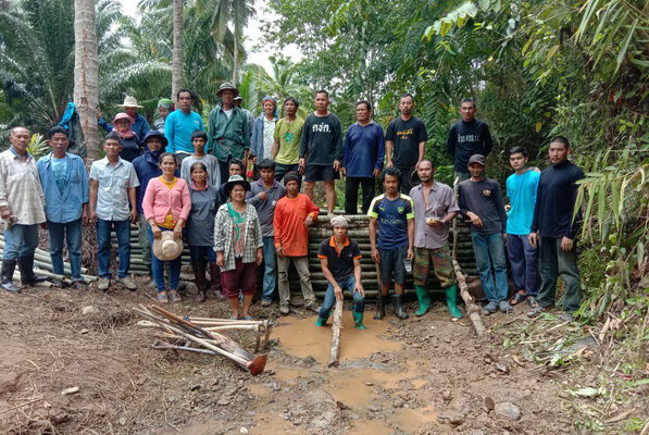 ตรัง กรมชลประทาน เร่งวางเหล็กกั้นน้ำที่ประตูระบายน้ำ ในการกั้นปริมาณน้ำในแม่น้ำ