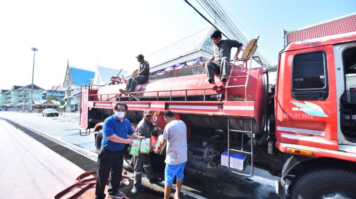 นครปฐม นายกเทศมนตรีเมืองไร่ขิงบัญชาการใช้น้ำยาล้างพื้นถนน