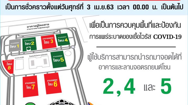 สมุทรปราการ ท่าอากาศยานสุวรรณภูมิปิดอาคารจอดรถโซน 3 เป็นการชั่วคราว ตั้งแต่วันศุกร์ที่ 3 เมษายน 2563 เป็นต้นไป
