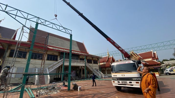 นครปฐม หลวงพี่น้ำฝน เจ้าอาวาสวัดไผ่ล้อม ใส่ใจทุกรายละเอียดถึงแม้แดดจะร้อนเพียงไหนคุมงานการบูรณศาลาหลวงพ่อพูล