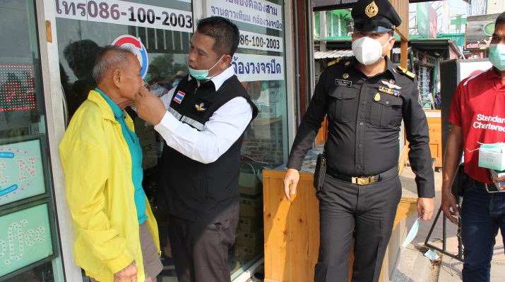 จิตอาสาสำนักงานสาธารณสุขจังหวัดตรัง ออกรณรงค์แจกหน้ากากอนามัยและคิวอาร์โค๊ต