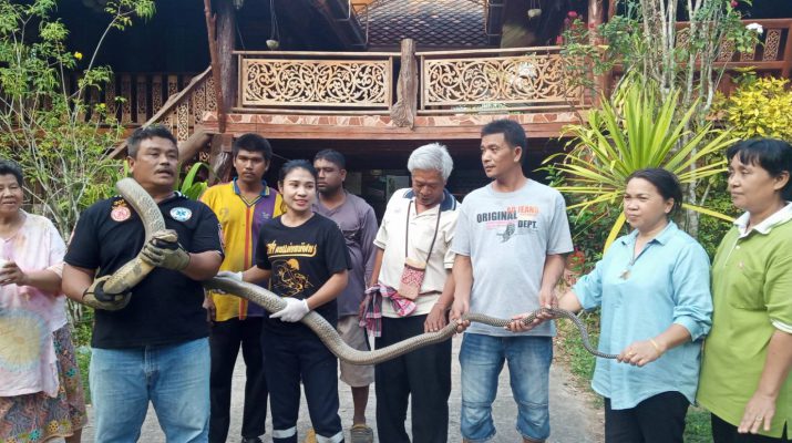 ตรัง สองตายายนั่งกินข้าว ต้อง ผงะจู่ๆก็มีพญาจงอางตัวใหญ่เลื้อยมาขดอยู่ที่เสากลางบ้าน ประสาน191แจ้งไปยังหน่วยกู้ภัย