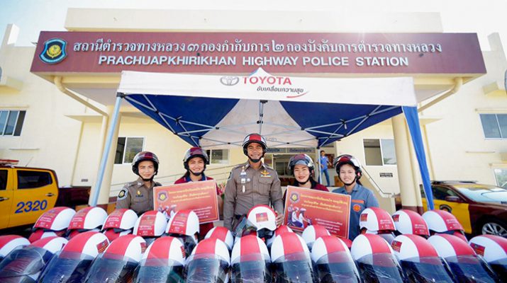 ตำรวจทางหลวงประจวบแจกหมวกกันน็อคแทนใจลดอัตราการเสียชีวิตช่วงเทศกาลปีใหม่