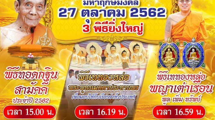 นครปฐม วัดไผ่ล้อม จัด3พิธียิ่งใหญ่ มหาฤกษ์มงคล 27 ตุลาคม 2562