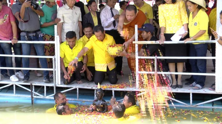 สุพรรณบุรี วัดเถรพลายจัดประเพณีอุ้มอัญเชิญหลวงพ่อดำสรงลงแม่น้ำท่าจีนแห่งเดียวในสุพรรณ