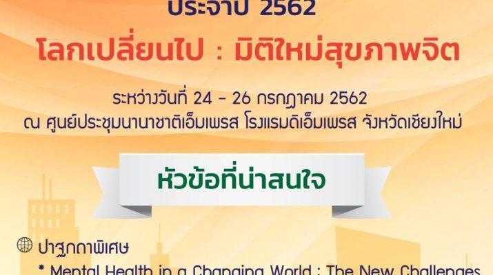 ขอเชิญเข้าร่วมการประชุมวิชาการสุขภาพจิตนานาชาติครั้งที่ 18ที่จังหวัดเชียงใหม่