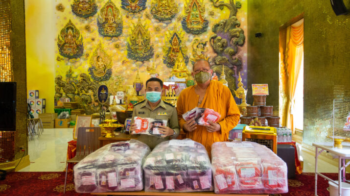 นครปฐม “หลวงพี่น้ำฝน” เจ้าอาวาสวัดไผ่ล้อม มอบหน้ากากยันต์นะปัดตลอด3,000ชิ้นให้เรือนจำอยุธยา