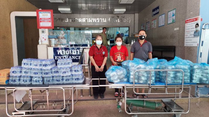 นครปฐม ร้านกัญญาณัชผู้ผลิตจำหน่ายเสื้อผ้า มอบอาหารกลางวันและน้ำดื่มให้รพ.2แห่ง
