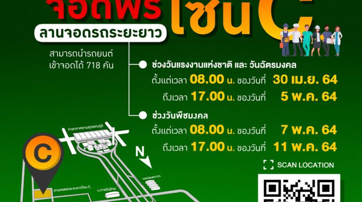 ท่าอากาศยานสุวรรณภูมิเปิดให้ผู้โดยสาร ผู้ใช้บริการจอดรถฟรีในช่วงวันหยุดยาว