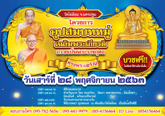 นครปฐม วัดไผ่ล้อม เชิญ ร่วมบวชฟรี ในโครงการอุปสมบทหมู่เฉลิมพระเกียรติ ถวายเป็นพระราชกุศล