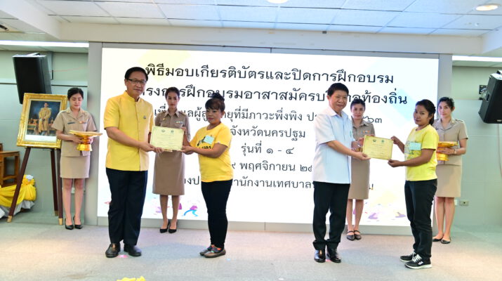 นครปฐม อธิบดี สถ.จับมืออธิบดีกรมอนามัย ลงพื้นที่มอบเกียรติบัตรอาสาสมัครบริบาลท้องถิ่น