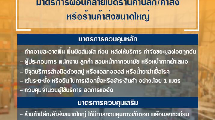 ประกาศจังหวัดนครปฐม ฉบับที่ 32 มาตรการผ่อนคลายร้านค้าปลีก/ค้าส่ง หรือตลาดค้าส่งขนาดใหญ่