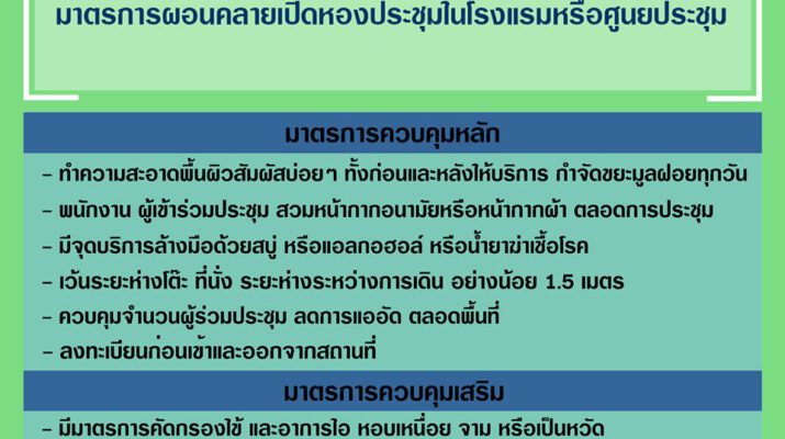 ประกาศจังหวัดนครปฐม ฉบับที่ 35 มาตรการผ่อนคลายการใช้ห้องประชุมในโรงแรม หรือศูนย์ประชุมในท้องที่จังหวัดนครปฐม