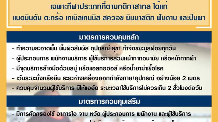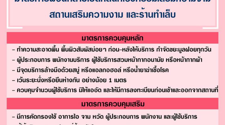 ประกาศจังหวัดนครปฐม ฉบับที่ 36 มาตรการผ่อนคลายคลินิกเวชกรรมเสริมความงาม สถานเสริมความงาม และร้านทำเล็บฯ
