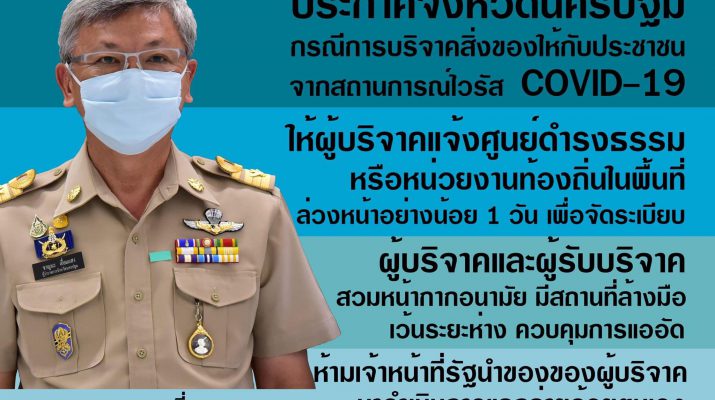 จังหวัดนครปฐม ประกาศมาตรการควบคุมการแพร่ของโรคติดต่ออันตราย กรณีการแจกสิ่งของให้ชาวบ้าน