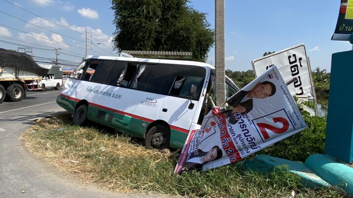 ปทุมธานี 15 ชีวิตหวิดดับ 10 ล้อชนรถประจำทาง เจ็บติดภายใน 1