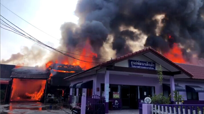 สมุทรสาคร ไฟไหม้โรงชุบเสียหาย 4 คูหา สาเหตุมาจากหม้อแปลงไฟฟ้าระเบิด