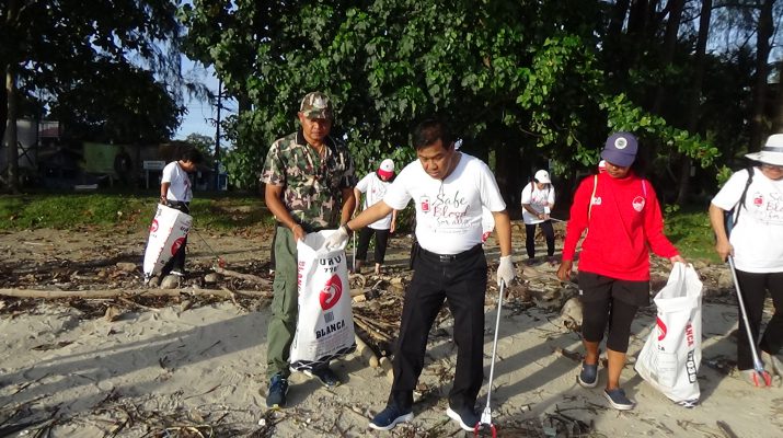 ผู้ว่าฯตรังนำสมาชิกเหล่ากาชาดและประชาชนบริเวณชายหาดปากเมงร่วมกันเก็บขยะบริเวณริมชายหาดปากเมง