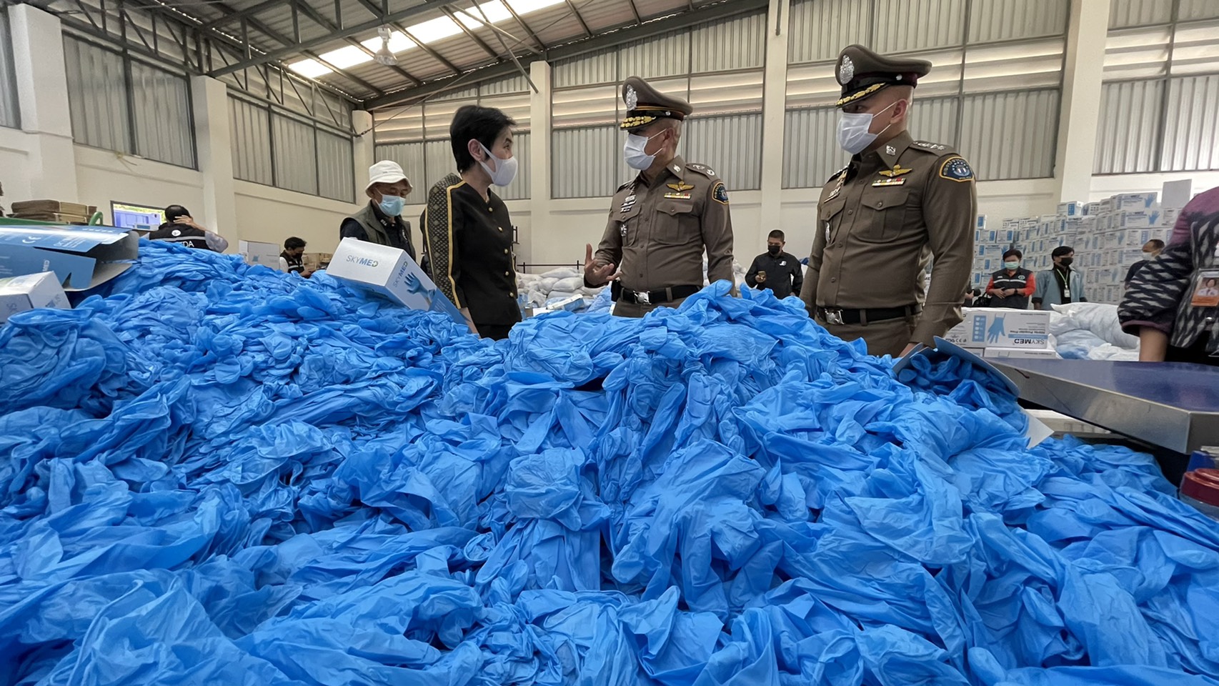 ปทุมธานี ตำรวจกองปราบร่วมอย.จับแหล่งผลิตถุงมือยางเถื่อน