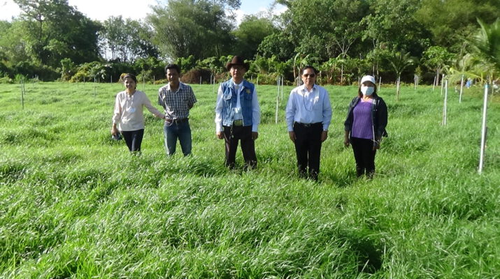 ที่หมู่ที่ 5 ตำบลนาหมื่นศรี อำเภอนาโยง จังหวัดตรัง นายวสันต์ สุขสุวรรณ เกษตรจังหวัดตรัง ลงพื้นที่และกล่าวว่าจังหวัดตรังพื้นที่ส่วนใหญ่ยางพารา ปาล์มน้ำมัน ช่วงหนึ่งเกษตรกรราคาไม่ดีจะมีผลกระทบต่อรายได้ของพี่น้องเกษตรกร ทางเกษตรได้แนะนำส่งเสริมเพิ่มพูนผลผลิต และพยายามให้ความรู้ เอาตัวอย่างดี ๆ ของเกษตรกรที่อื่นมาบอกกล่าวให้พี่น้องได้มีอาชีพเสริม โดยเฉพาะในช่วงแล้ง ช่วงโควิด ให้มีรายได้เช่นภายนอกในเขตพื้นที่อาจจะส่งเสริมการปลูกผักทอง เพื่อให้พี่น้องได้มีรายได้ช่วงสั้นๆ ในเวลานี้ หลายพื้นที่อาจจะมีการปลูกฝรั่ง เป็นรายได้เสริม ถ้าคิดกันต่อไร่ผลตอบแทนค่อนข้างจะสูงกกว่ายางพารา แม้กระทั่งเรื่องของการปลูกสละพันธุ์สุมาลีที่อำเภอย่านตาขาว เขาปลูกแค่ 17 ต้น สามารถมีรายได้ปีละ 6-7 หมื่นบาท เมื่อเปรียบเทียบกับยางพาราแล้วเป็นรายได้เสริมของพี่น้อง ในส่วนอื่น ๆ เช่นการปลูกหญ้า จะรู้ว่าภาคใต้บ้านเรานครศรีธรรมราช พัทลุง ตรัง ศิลปวัฒนธรรมประจำถิ่นก็คือเรื่องการเลี้ยงวัวชน นักกีฬามวยวัวชนก็ต้องใช้แปลงหญ้า โดยเฉพาะแปลงนี้ทำมาร่วม 10 ปี เป็นอาชีพเสริมให้กับพี่น้องเกษตรกรได้อย่างดี ทำน้อยแต่ได้มาก ก็ถือว่าเป็นตัวอย่างหนึ่งของเกษตรกรที่มีอาชีพหลากหลาย ไม่ทำอาชีพเชิงเดี่ยว ไม่ใช่ทำยางอย่างเดียว ไม่ใช่ทำปาล์มอย่างเดียว เวลาพืชราคาตกต่ำพี่น้องเราก็เหนื่อยหน่อย แต่ว่าถ้าทำหลากหลายยามใดที่สินค้าตัวใดตัวหนึ่งตกต่ำยังมีตัวอื่นมาจุนเจือ มีรายได้รายวัน รายเดือน รายปีไปง