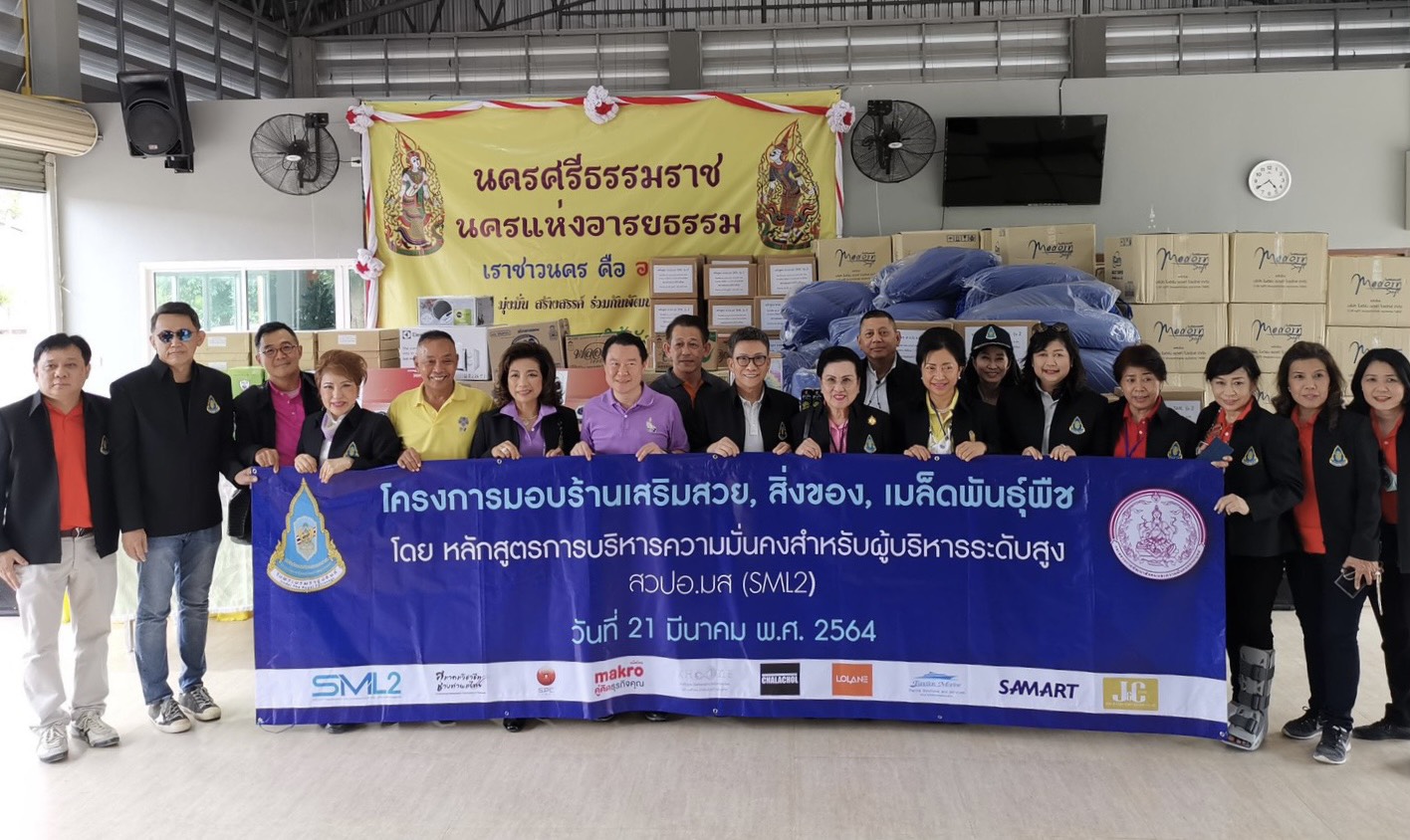 พลเอก ธิวา เพ็ญเขตกรณ์ ผู้อำนวยการหลักสูตรการบริหารความมั่นคงสำหรับผู้บริหารระดับสูง SML และคณะนักศึกษาหลักสูตรการบริหารความมั่นคงสำหรับผู้บริหารระดับสูง สวปอ.มส.SML รุ่นที่ 2 นำโดย นายบัณฑิต สะเพียรชัย กรรมการผู้จัดการใหญ่ บริษัท บีซีพีจี จำกัด (มหาชน) ในฐานะประธานนักศึกษาฯ ร่วมมอบเครื่องอุปโภคบริโภคที่จำเป็นต่อการดำรงชีวิต มูลค่ากว่าหนึ่งล้านบาท ให้แก่ สถานคุ้มครองคนไร้ที่พึ่งภาคใต้ บ้านสิชล จังหวัดนครศรีธรรมราช และมอบห้องเสริมสวย SML2 Salon ให้กับสมาชิกบ้านสิชล พร้อมหลักสูตรอบรมวิชาชีพช่างผม โดยครูช่างผมจากชลาชลกรุ๊ป เพื่อให้สมาชิกบ้านสิชลมีองค์ความรู้สามารถนำไปประกอบอาชีพ และพึ่งพาตนเองได้