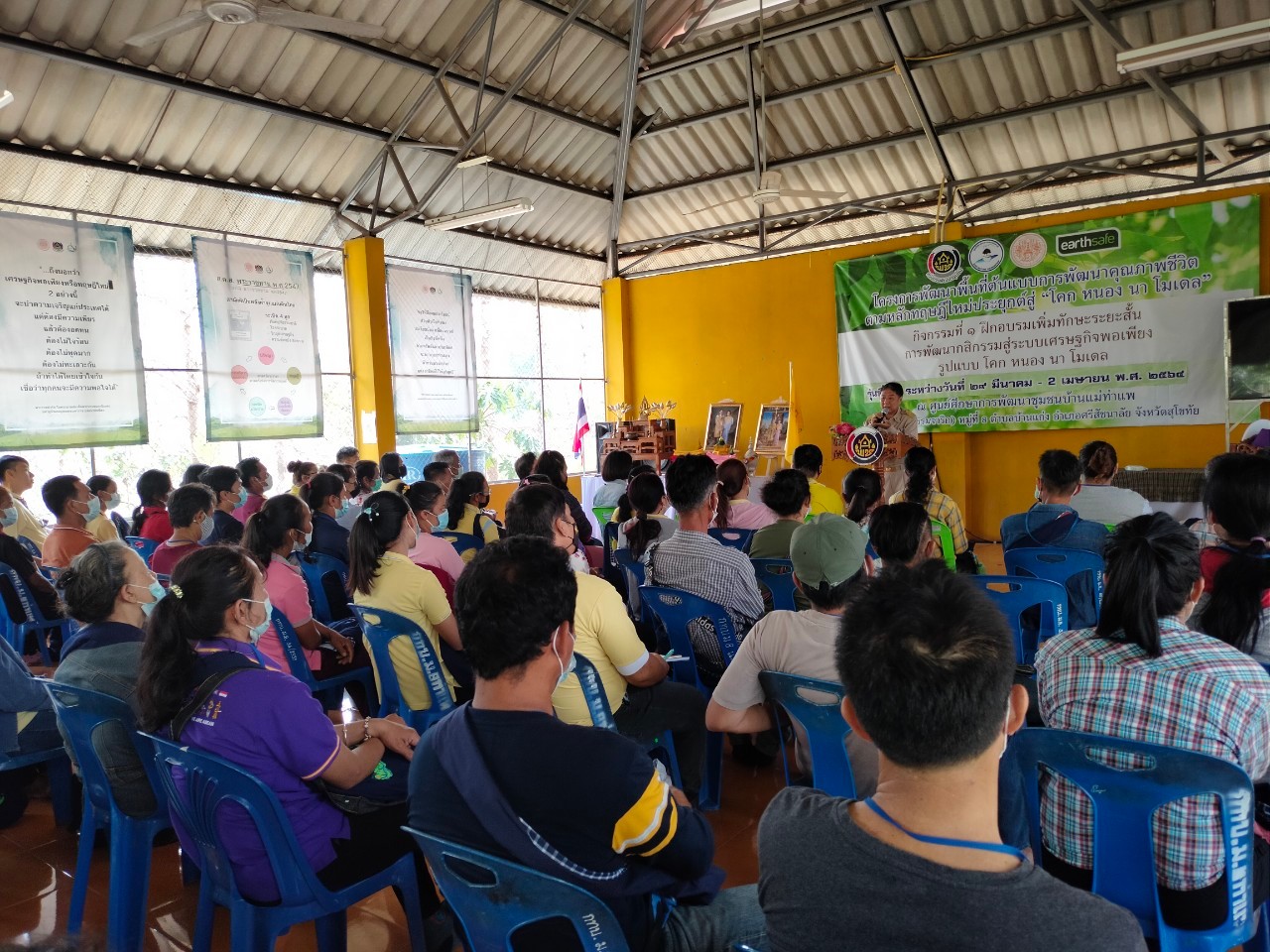 วันที่ 29 มีนาคม 2564 เวลา 10.00 น. นายวิรุฬ พรรณเทวี ผู้ว่าราชการจังหวัดสุโขทัย มอบหมายอำเภอเมืองสุโขทัย โดยนายปริญญา ตังคณานุกูลชัย ปลัดอาวุโสอำเภอเมืองสุโขทัย จังหวัดสุโขทัย เป็นประธานเปิดการอบรม โครงการพัฒนาพื้นที่ต้นแบบการพัฒนาคุณภาพชีวิต ตามหลักทฤษฎีใหม่ ประยุกต์สู่ โคก หนอง นา พช. รุ่นที่ 14 กิจกรรมที่ 1 ฝึกอบรมเพิ่มทักษะระยะสั้นการพัฒนากสิกรรม สู่ระบบเศรษฐกิจพอเพียง รูปแบบ โคก หนอง นา พช. และเยี่ยมชมสถานที่ฝึกอบรม พร้อมทั้งให้กำลังใจกับผู้เข้ารับการอบรมดังกล่าว ณ ศูนย์ศึกษาการพัฒนาชุมชน(อาศรมพระธรรมจาริก) หมู่ที่ 8 ตำบลบ้านแก่ง อำเภอศรีสัชนาลัย จังหวัดสุโขทัย