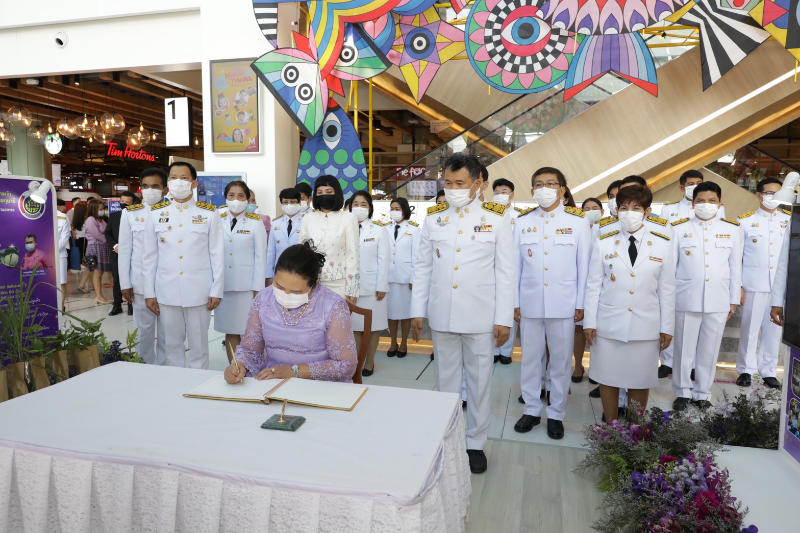ในโอกาสนี้ กรมการพัฒนาชุมชน กระทรวงมหาดไทย ได้ร่วมกับศูนย์การค้าเดอะมอลล์งามวงศ์วาน ดำเนินการจัดพิธีลงนามถวายพระพร และนิทรรศการวันคล้ายวันพระราชสมภพสมเด็จพระกนิษฐาธิราชเจ้า กรมสมเด็จพระเทพรัตนราชสุดา ฯ สยามบรมราชกุมารี ณ ชั้น 1 Skylight Hall ศูนย์การค้าเดอะมอลล์งามวงศ์วาน ในการนี้ นายสุทธิพงษ์ จุลเจริญ อธิบดีกรมการพัฒนาชุมชน เป็นประธานกล่าวคำถวายพระพรชัยมงคล จากนั้นนำถวายความเคารพเบื้องหน้าพระฉายาลักษณ์สมเด็จพระกนิษฐาธิราชเจ้า กรมสมเด็จพระเทพรัตนราชสุดา ฯ สยามบรมราชกุมารี โดยมี นายอภิชัย อร่ามศรี รองผู้ว่าราชการจังหวัดนนทบุรี คณะผู้บริหาร ข้าราชการ กรมการพัฒนาชุมชน ร่วมด้วยนางสาวดวงตา พงษ์วิไลย์ ผู้จัดการใหญ่การตลาด CORPORATE MARKETING บริษัท เดอะมอลล์ กรุ๊ป จำกัด นางจริยา หรรษาวงศ์ ผู้จัดการทั่วไป OPERATION สาขางามวงศ์วาน และคณะร่วมพิธี