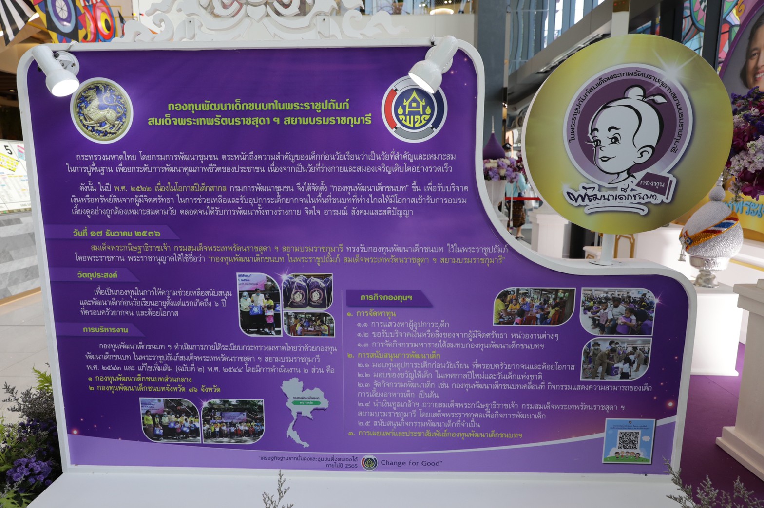 และ ด้วยสำนึกในพระมหากรุณาธิคุณต่อสมเด็จพระกนิษฐาธิราชเจ้า กรมสมเด็จพระเทพรัตนราชสุดา ฯ สยามบรมราชกุมารี ที่ทรงมีคุณูปการในการพัฒนาคุณภาพชีวิตเด็ก เยาวชน ประชาชนในถิ่นทุรกันดาร และผู้ด้อยโอกาส และทรงมีพระมหากรุณารับกองทุนพัฒนาเด็กชนบทไว้ในพระราชูปถัมภ์ฯ ในปี พ.ศ.2536 โดยพระราชทานพระราชานุญาต ให้ใช้ชื่อว่า “กองทุนพัฒนาเด็กชนบท ในพระราชูปถัมภ์ สมเด็จพระเทพรัตนราชสุดาฯ สยามบรมราชกุมารี” เพื่อเป็นกองทุนแห่งศรัทธาในการให้ความช่วยเหลือสนับสนุนและพัฒนาเด็กก่อนวัยเรียนตั้งแต่แรกเกิดถึง 6 ปี ตลอดมากองทุนพัฒนาเด็กชนบทส่วนกลาง และกองทุนพัฒนาเด็กชนบทจังหวัด 76 จังหวัด ได้มอบทุนช่วยเหลือเด็กมาแล้วกว่า 105,805 คน เป็นเงิน 128,219,000 บาท และทูลเกล้าฯ ถวายเงินโดยเสด็จพระราชกุศลในกิจการเด็ก ปีละ 1,000,000 บาท สร้างโอกาสให้เด็กได้เล่าเรียน ให้มีคุณภาพชีวิตที่ดีอย่างทั่วถึงและเหมาะสมตามวัย อันเป็นส่วนสำคัญในการสร้างกำลังหลักสู่การพัฒนาประเทศชาติ ต่อไปอย่างยั่งยืน