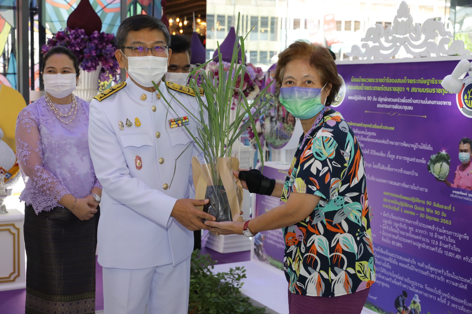 กรมการพัฒนาชุมชน น้อมสนองพระกรุณาธิคุณสมเด็จพระกนิษฐาธิราชเจ้า กรมสมเด็จพระเทพรัตนราชสุดา ฯ สยามบรมราชกุมารี สร้างสัมฤทธิ์ผลของการพัฒนาในด้านต่าง ๆ ที่เกิดจากพระราชดำริอันมีพื้นฐานจากพระเมตตากรุณาธิคุณ อันได้แก่ การน้อมนำหลักปรัชญาของเศรษฐกิจพอเพียง สู่การปฏิบัติในระดับครัวเรือน พร้อมทั้งน้อมนำแนวพระราชดำริของสมเด็จพระกนิษฐาธิราชเจ้า กรมสมเด็จพระเทพรัตนราชสุดาฯ สยามบรมราชกุมารี สู่แผนปฏิบัติการ 90 วัน ปลูกผักสวนครัวเพื่อสร้างความมั่นคงทางอาหาร ต่อยอดการพัฒนาคุณภาพชีวิตของประชาชนระดับฐานราก สร้างความรักความสามัคคีในครอบครัว มีอาหารปลอดภัยไว้บริโภค มุ่งมั่นลดค่าใช้จ่ายในครัวเรือนตามหลักปรัชญาเศรษฐกิจพอเพียง และสร้างความยั่งยืนตามแนวทางของ SDGs ในเรื่องการขจัดความหิวโหย ชี้ให้เห็นถึงประโยชน์ที่ประชาชนจะได้รับหลังจากการร่วมปลูกผักสวนครัว กล่าวคือ 12 ล้านครัวเรือนทั่วประเทศ จะสามารถลดค่าใช้จ่าย 50 บาท/วัน/ครัวเรือน หรือกว่า 200,000 ล้านบาท/ปี ขยายผลไปสู่การสร้างชุมชนสีเขียว เป็นมิตรกับสิ่งแวดล้อม มีครัวเรือนจัดทำถังขยะเปียกลดโลกร้อน ตลอดจนก่อให้เกิดนวัตกรรมแห่งอาหาร และศูนย์ขยายเมล็ดพันธุ์ รูปธรรมแห่งความสำเร็จดังกล่าวยังคงความต่อเนื่องร่วมกับภาคีเครือข่ายในการบรรเทาความเดือดร้อนให้กับประชาชนในช่วงวิกฤตการณ์แพร่ระบาดของไวรัสโคโรนา 2019 (โควิด – 19) และการพึ่งตนเองในระยะยาว ในอีกด้านหนึ่งการส่งเสริมให้ภาคประชาชนปลูกพืชผักนานาชนิด พืชพื้นเมือง มีการเก็บเมล็ดพันธุ์ และขยายผลในพื้นที่แต่ละครัวเรือน แต่ละชุมชน เอื้อให้เกิดการสนับสนุนการดำเนินงานโครงการอนุรักษ์พันธุกรรมพืชอันเนื่องมาจากพระราชดำริสมเด็จพระเทพรัตนราชสุดาฯ สยามบรมราชกุมารี (อพ.สธ.) ซึ่งกรมการพัฒนาชุมชน เป็นหนึ่งใน 204 หน่วยงานที่ร่วมสนองพระราชดำริในการสร้างความเข้าใจ และทำให้ตระหนักถึงความสำคัญของพันธุกรรมพืชต่าง ๆ ที่หายากและกำลังจะหมดไปในประเทศไทย โดยพื้นที่และกิจกรรมของโครงการได้ขยายและกระจายออกไปสู่ภูมิภาคต่าง ๆ จำนวน 16 แห่ง ได้แก่ ศูนย์ศึกษาและพัฒนาชุมชน 11 แห่ง ศูนย์เรียนรู้ทุนชุมชน 3 แห่ง วิทยาลัยการพัฒนาชุมชน อ.บางละมุง จ.ชลบุรี และส่วนงานพัฒนาชุมชนในศูนย์การพัฒนาเขาหินซ้อนอันเนื่องมาจากพระราชดำริ อ.พนมสารคาม จ.ฉะเชิงเทรา รวมทั้งมีแนวทางการดำเนินงานที่หลากหลายสอดคล้องกับภูมิสังคม