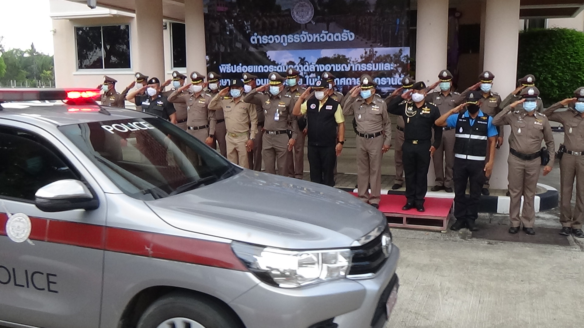 ตำรวจภูธรจังหวัดตรัง สนธิกำลังร่วม ปล่อยแถวระดมกำลังกวาดล้างอาชญากรรมช่วงเทศกาลสงกรานต์ เน้นกลุ่มเป้าหมายสำคัญ ได้แก่ อาวุธปืน อาวุธสงคราม ยาเสพติด บ่อนการพนัน ควบคู่กับการป้องกันโควิด- 19