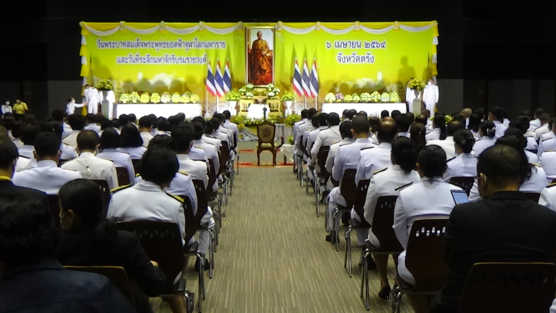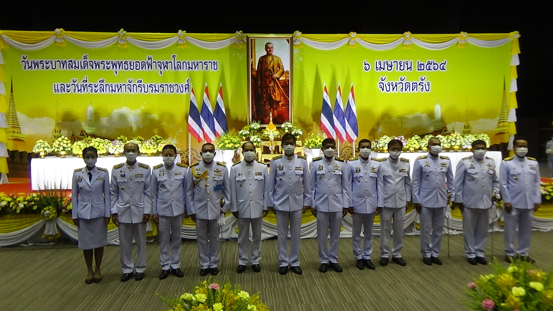เหล่าข้าราชการในจังหวัดตรัง จัดพิธีเนื่องในวันจักรี และรำลึกและแสดงออกถึงความจงรักภักดีต่อองค์ปฐมกษัตริย์แห่งราชวงศ์จักรี ที่ได้สถาปนาและทำนุบ้านเมืองจนเป็นปึกแผ่นมาจนถึงปัจจุบัน