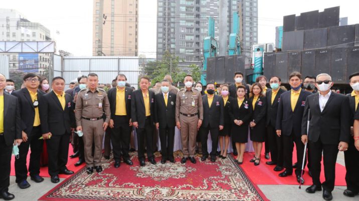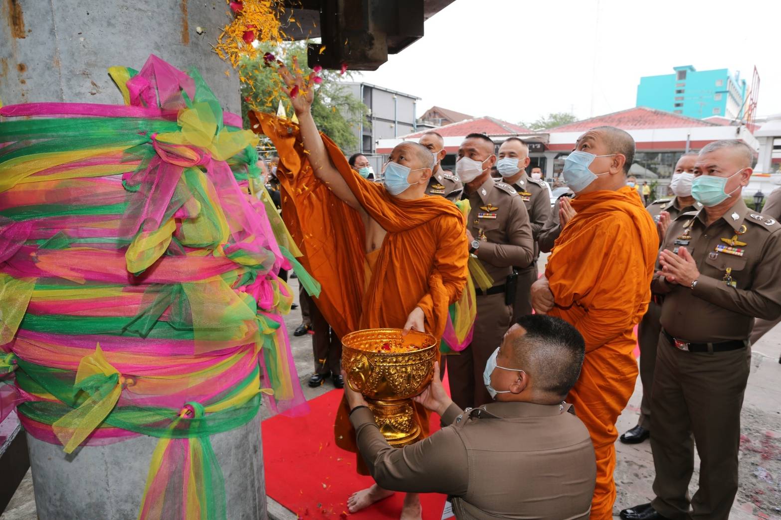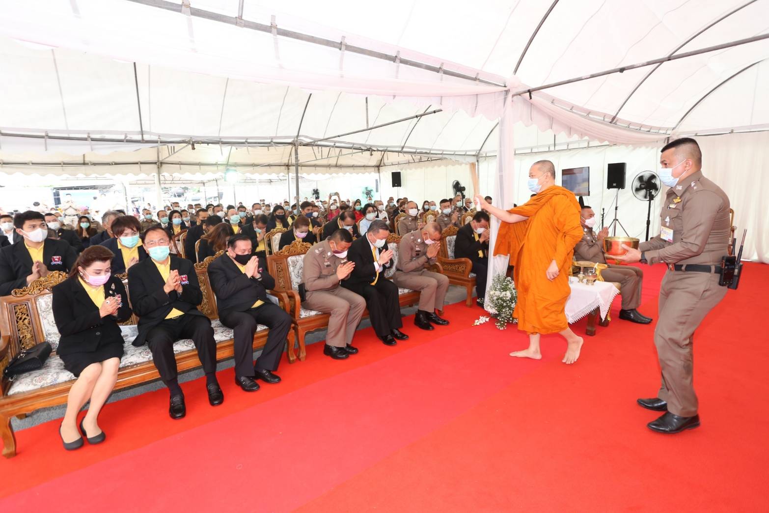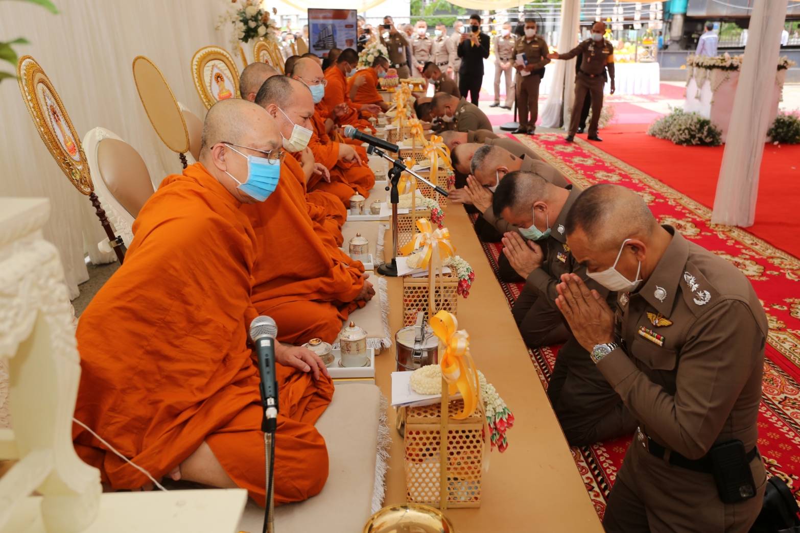 โดยได้รับความเมตตาจากเจ้าพระคุณ สมเด็จพระมหารัชมงคลมนี (ธงชัย ธมฺมธโช) เจ้าคณะใหญ่หนกลาง กรรมการมหาเกระสมาคม วัดไตรมิตรวิทยาราม กรุงเทพมหานคร ประธานพิธีฝ่ายสงฆ์ ทำพิธีบวงสรวง โดยพระครูภาวณาโสภณ วัดป่าธรรมโสภณ จังหวัดลพบุรี ประกอบพิธี จากนั้นประธานในพิธี และรองประธาน และผู้บังคับบัญชา ร่วมโปรยข้าวตอกดอกไม้ พระะสงฆ์จำนวนรวม 9 รูป สวดเจริญพระพุทธมนต์ เพื่อความเป็นศิริมงคลแก่ผู้ร่วมพิธี โดย พล.ต.ท.ภัคพงศ์ พงษ์เภตรา ผู้บัญชาการตำรวจ นครบาล ประธานในพิธีทำพิธีวางศิลาฤกษ์ พร้อมผลไม้มงคล 9 ชนิด วางแผ่นอิฐ /แผ่นเงินทองนาค,วางใบไม้มงคล,ฉาบปูนบนแผ่นอิฐ,วางแผ่นศิลาฤกษ์ /วางทับทิม จากนั้นสมเด็จพระมหารัชมงคลมุนี (ธงชัย ธมมธโช) ประธานในพิธีฝ่ายสงฆ์พรมน้ำมนต์ และโปรยดอกไม้ที่เข็มเอก ตอกเข็มเอกเป็นปฐมฤกษ์ เป็นเสร็จพิธี