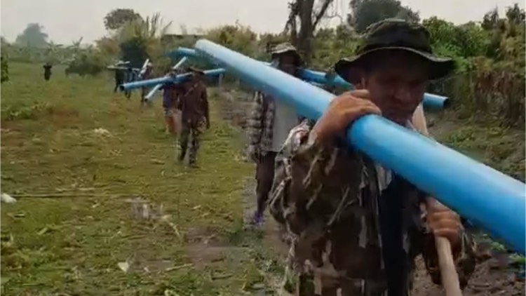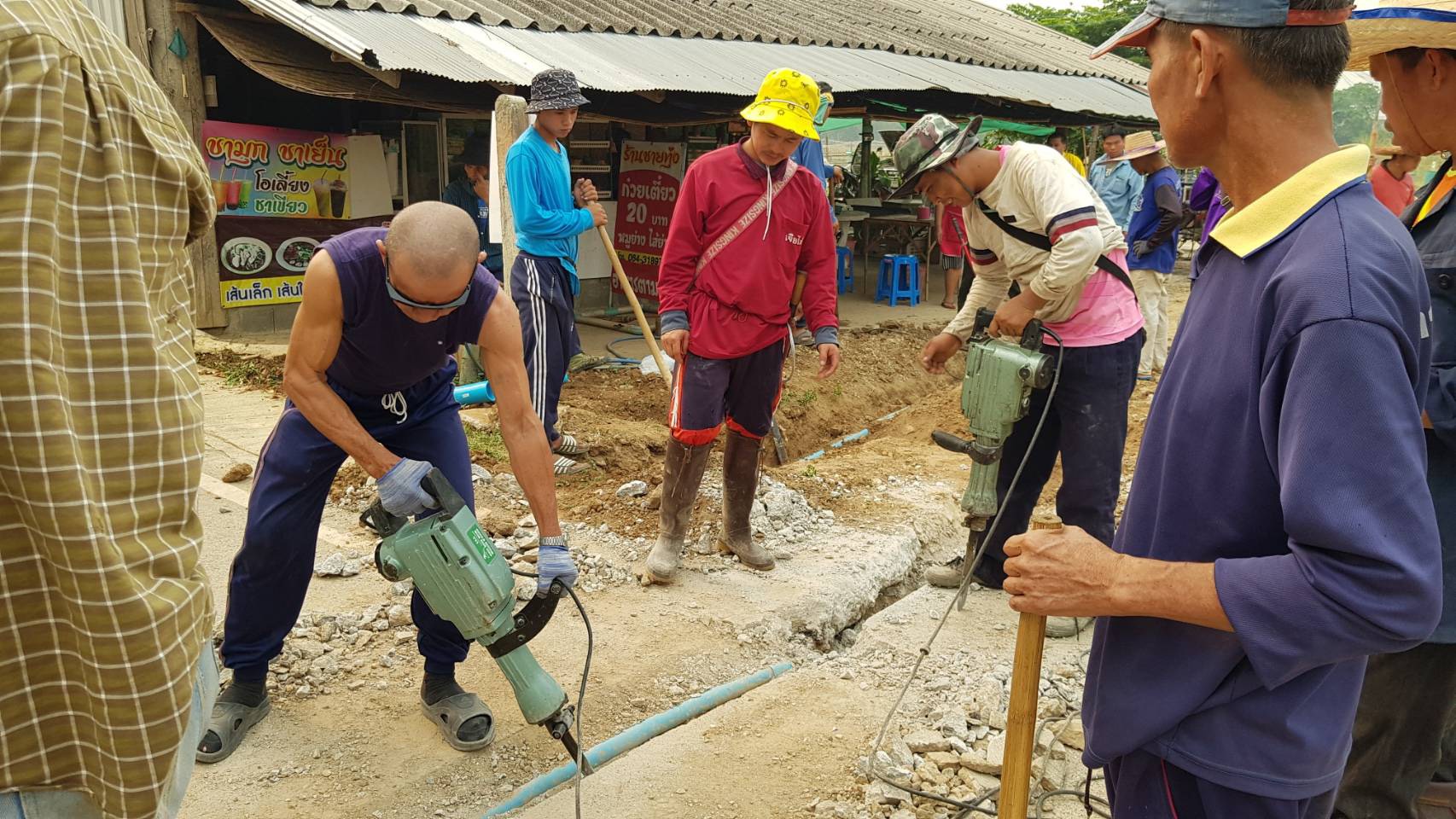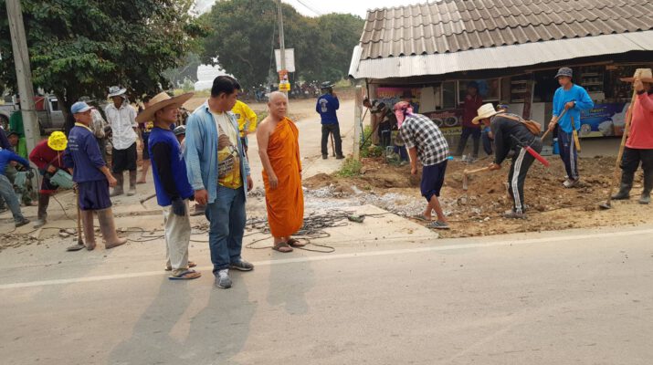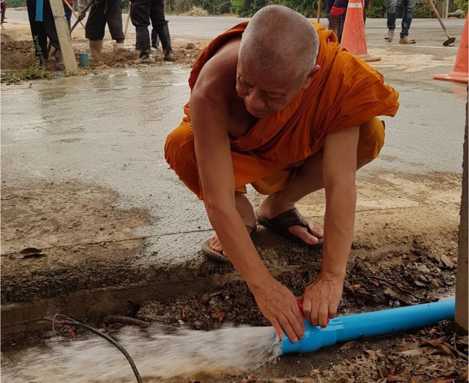 พระร่วมชาวบ้านจัดทำประปาหมุ่บ้านชายแดน