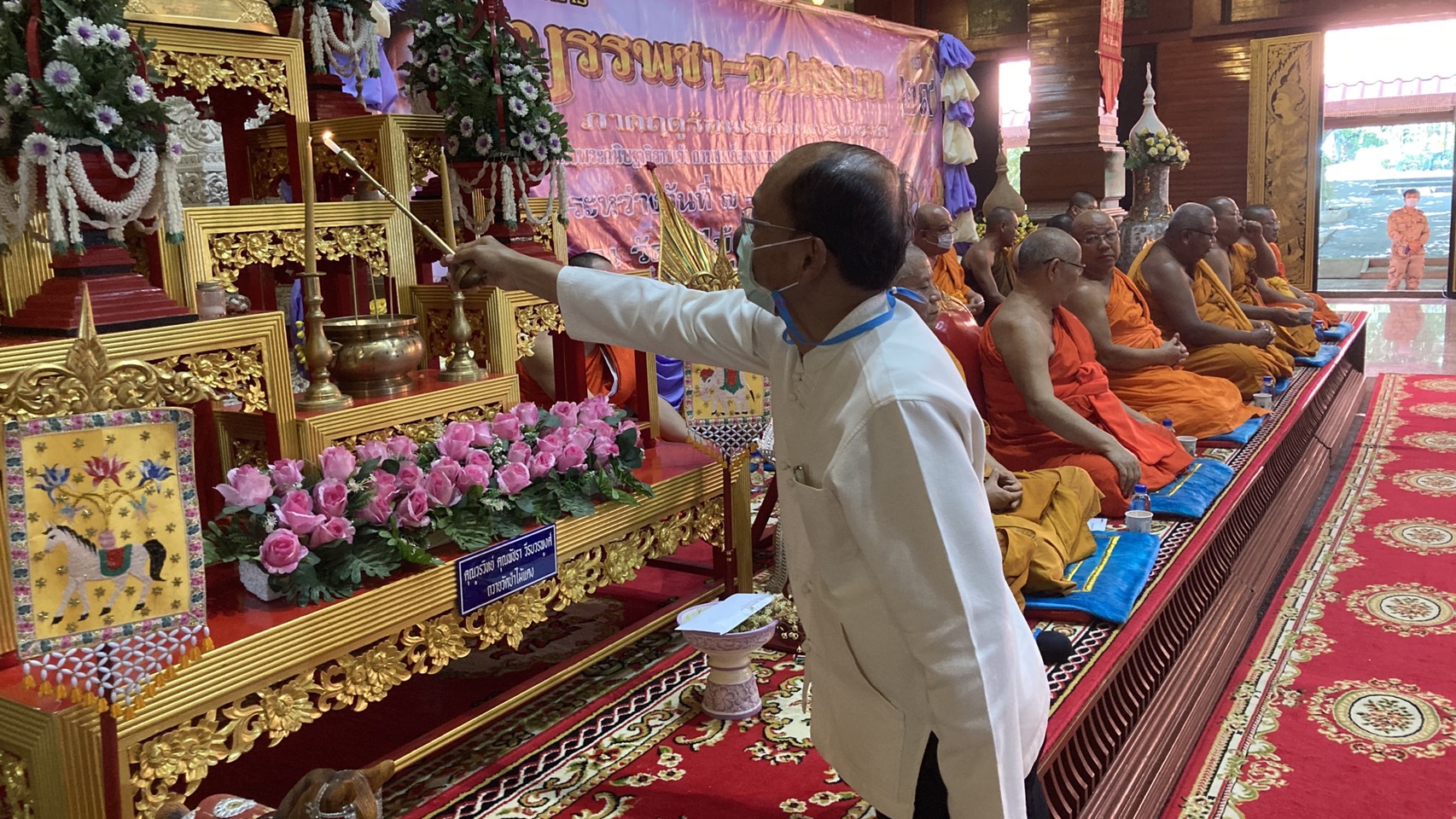 โดยทางนายอุทัย สอนจีนได้มาเป็นประธานเปิดพิธีในการบรรพชาอุปสมบทหมู่ในวันนี้ จุดประสงค์ในการบรรพชาอุปสมบทเพื่อ ให้ผู้เข้าบวชได้ใช้เวลาว่างช่วงปิดเทอมให้เกิดประโยชน์เข้ารับการอบรมปลูกฝังให้มีคุณธรรม จริยธรรมนำชีวิตที่ดีกว่า แบ่งเบาภาระผู้ปกครองโดยให้เยาวชนได้รับโอกาสการพัฒนาคุณธรรมโดยความสามารถอย่างกว้างขวาง เพื่อให้ผู้บวชได้นำหลักหลักธรรมคำสอนทางพระพุทธศาสนาประยุกต์ใช้ในการแก้ปัญหาชีวิตประจำวันได้ถูกต้อง เพื่อให้เยาวชนได้รับการพัฒนาทางจิตใจให้มีคุณภาพตามหลักของพระพุทธศาสนา เพื่อให้เยาวชนที่ไม่ลาสิกขาบทเกิดความศรัทธาในหลักธรรมคำสอนของพระพุทธศาสนาได้มีโอกาสศึกษาเล่าเรียนเป็นศาสนทายาทสืบไป โดยจะทำการศึกษาหลักธรรมคำสอนทางพระพุทธศาสนาตั้งแต่วันที่ 7 เมษายน 2564 ถึงวันที่ 13 เมษายน 2564 จำนวน 7 วัน แต่สำหรับพระภิกษุหรือสามเณรที่ต้องการศึกษาหรือปฏิบัติศึกษาพระธรรมวินัยก็สามารถอยู่ต่อเพื่อศึกษาหลักธรรมคำสอนของพระพุทธศาสนาได้มีโอกาสศึกษาเล่าเรียนเป็นศาสนทายาทสืบไป