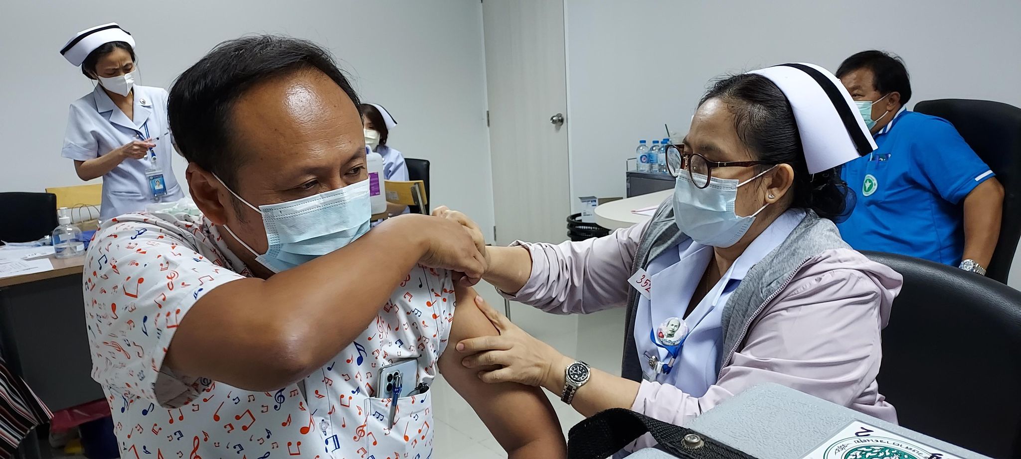 สุพรรณบุรี รพ.ศูนย์เจ้าพระยายมราชฉีดวัคซีนให้บุคลากรของรพล่าสุดพบผู้ติดเชื้อเพิ่ม5ราย