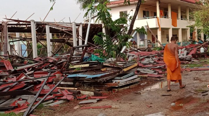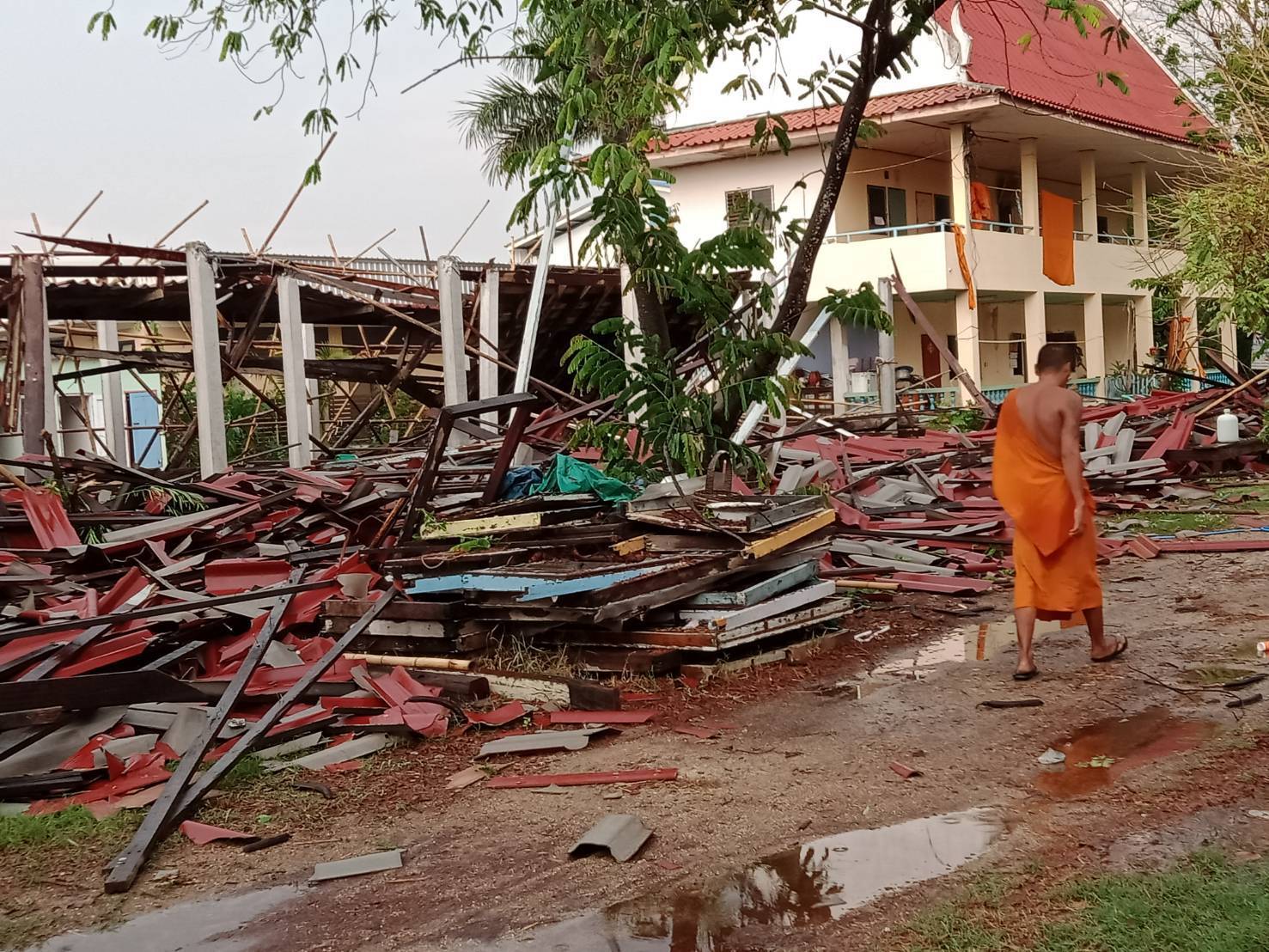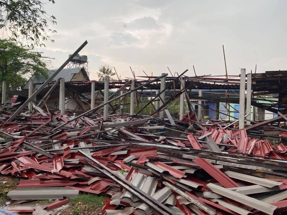 พายุฤดูร้อนพัดถล่มเขตอำเภอวังน้อยพระกำลังก่อสร้างกุฎิสงฆ์ใหม่พังราบ