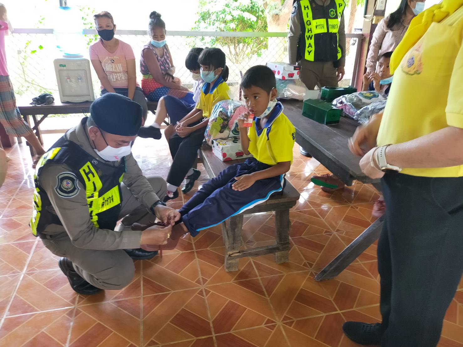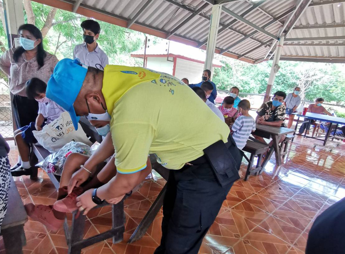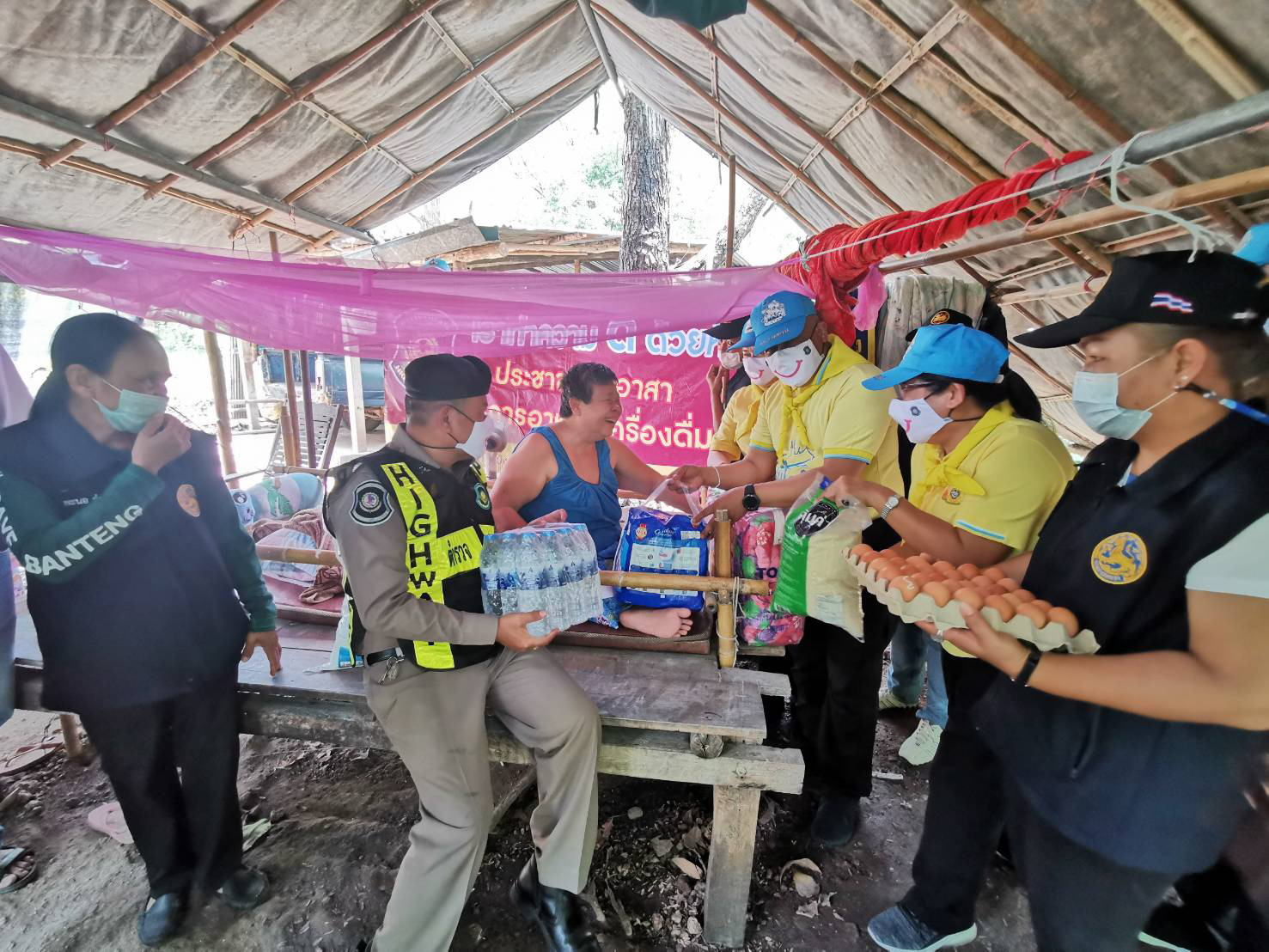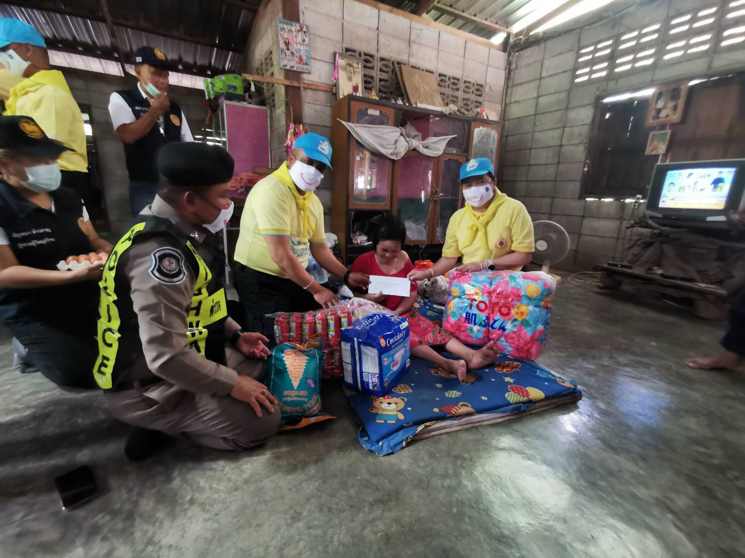 กาญจนบุรี ผู้กำกับตำรวจทางหลวงนำทีมมอบสิ่งของช่วยเหลือผู้ป่วยติดเตียง