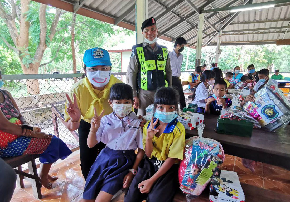 ที่ จ.กาญจนบุรี พ.ต.อ.ธนนท์ โตงิ้ว ผกก.2 บก.ทล.พ.ต.ท.อิทธิศักดิ์ คำผ้าคูณ สว.ส.ทล.6 กก.2 บก.ทล.พร้อมด้วยข้าราชการตำรวจในสังกัด กก.2 บก.ทล.และ หน่วยบริการทางหลวงไทรโดย มี ด.ต.สราวุธ รังกาแกม หัวหน้าหน่วยบริการตำรวจทางหลวงไทรโยค จ.กาญจนบุรี (ส.ทล.6 กก.2 บก.ทล.),กู้ภัยตำรวจทางหลวงกาญจนบุรี, นายวสันต์ สุนจิรัตน์ กำนัน ต.ช่องสะเดา กำนันดีเด่นปี2564 ,ผู้ใหญ่บ้านตำบลช่องสะเดา ได้ร่วมกันมอบถุงยังชีพให้กับผู้ป่วยติดเตียงตามบ้านในพื้นที่ ต.ช่องสะเดา อ.เมือง จ.กาญจนบุรี และมอบทุนการศึกษา และมอบรองเท้า นักเรียน อุปกรณ์การเรียน (สมุด ดินสอ ปากกา ไม้บรรทัด ยางลบ) ของเล่น นมกล่อง ขนมถุง ไอศครีม ขนม ให้กับ ให้กับนักเรียนทุกคน