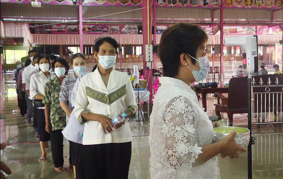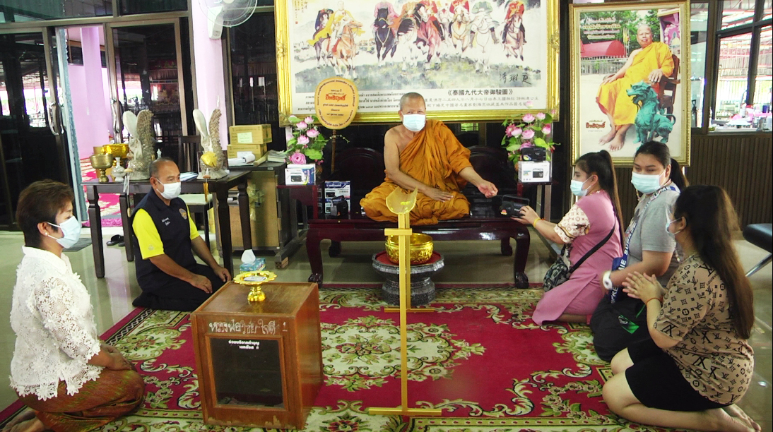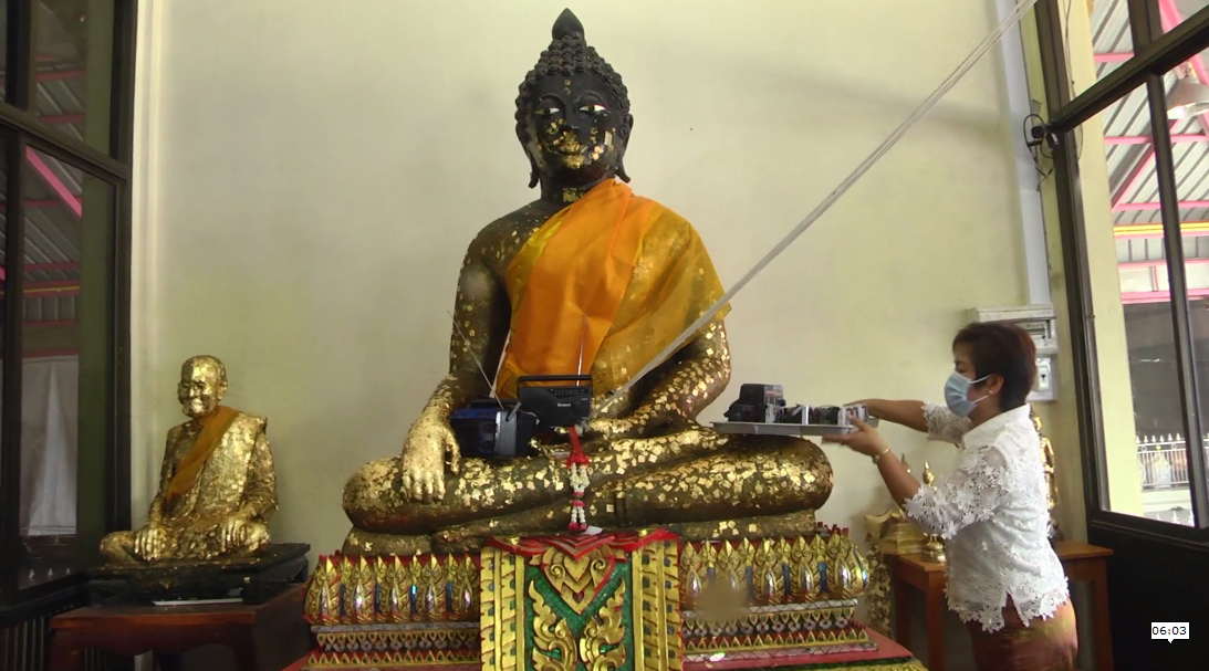 บรรยากาศท่องเที่ยววันหยุดยาวช่วงเทศกาลสงกรานต์ ปีใหม่ไทย สถานการณ์โควิด 19 ระบาด ประชาชนและนักท่องเที่ยวเดินสายทำบุญไหว้พระปิดทองขอพรหลวงพ่อดำ หลวงพ่อขาว รับปีใหม่ไทย สรงน้ำพระ วิถีใหม่ โดยการใช้ท่อพีวีซีทำเป็นรางน้ำ เว้นระยะห่าง ปฏิบัติตามมาตรการ การควบคุมโรคของสาธารณสุข อย่างเคร่งครัด