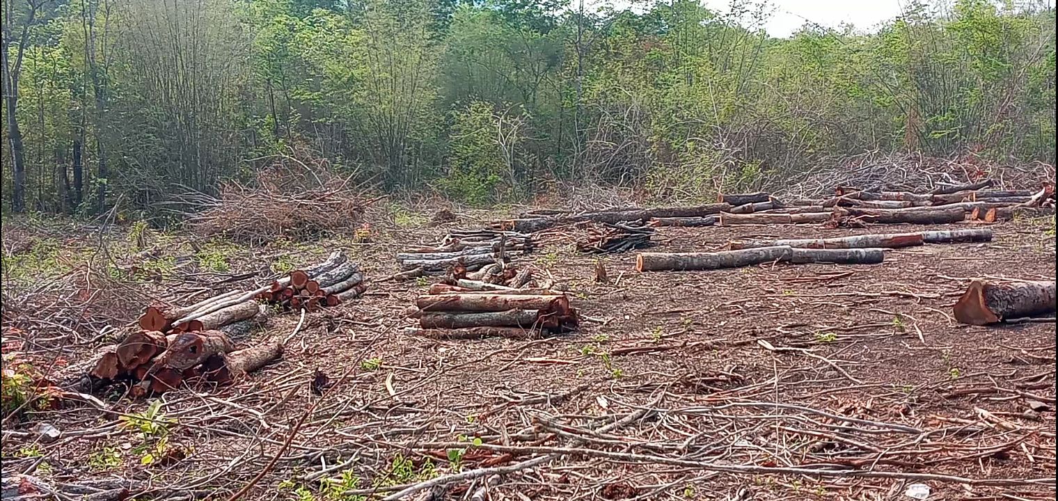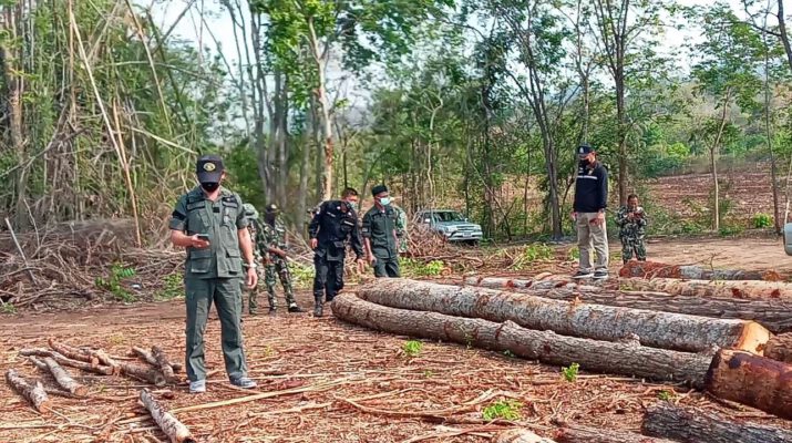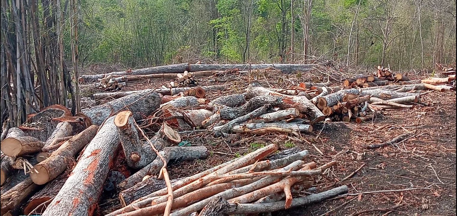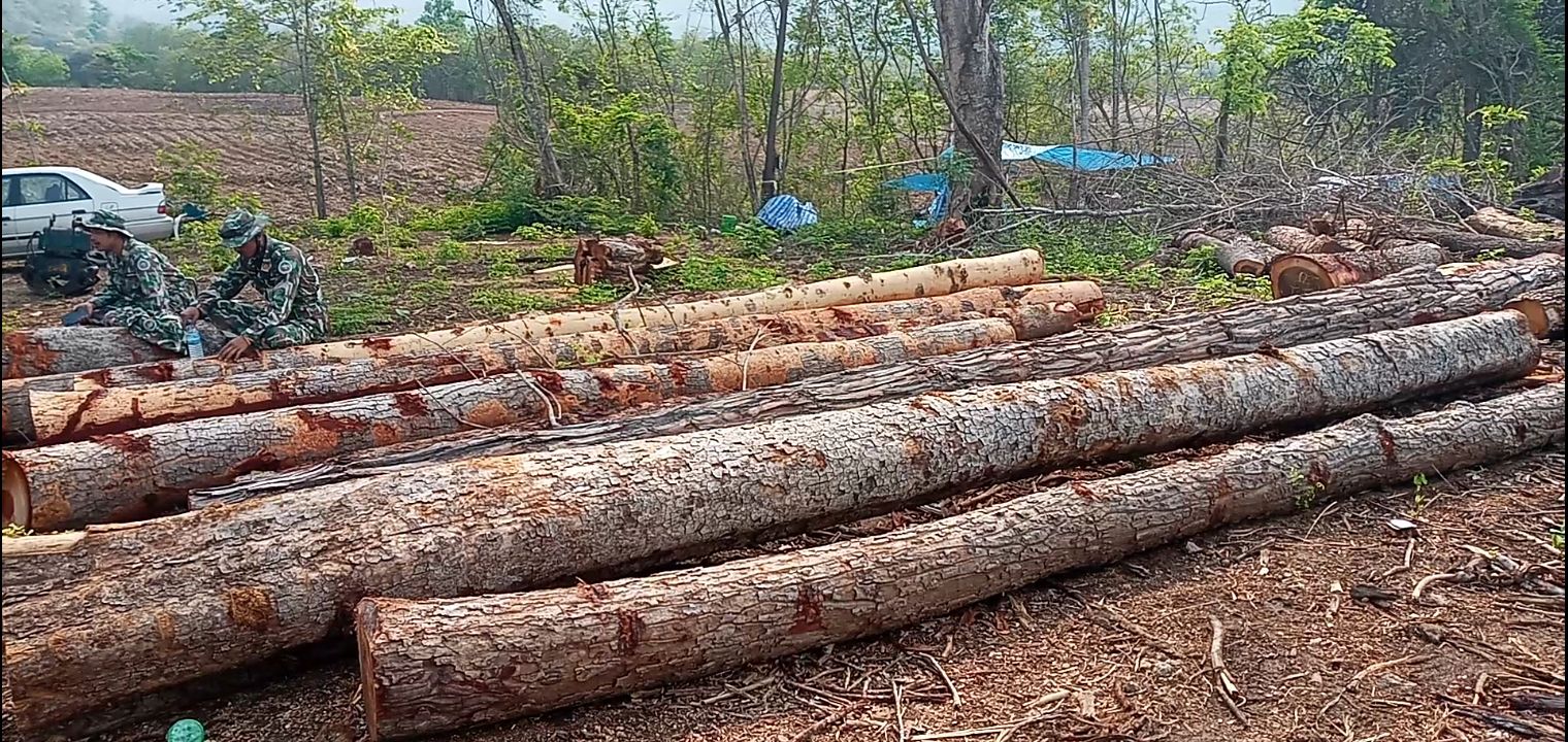 กาญจนบุรี จนท.ยึดไม้หวงห้ามที่ลักลอบตัดในพื้นที่ สปก.กว่า 400 ท่อนในพื้นที่ป่าไทรโยค