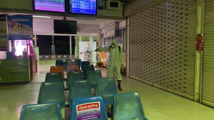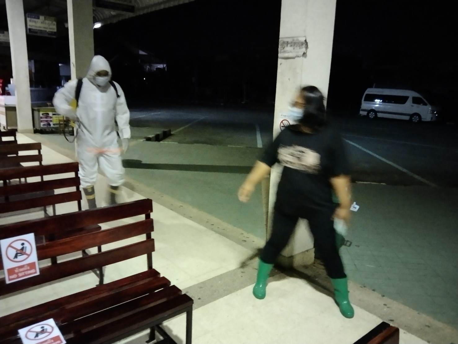 เจ้าหน้าที่ อบจ.ตรังฉีดพ่นฆ่าเชื้อโรคบริเวณสถานีขนส่งผู้โดยสารตรัง สร้างความมั่นใจผู้ใช้บริการ