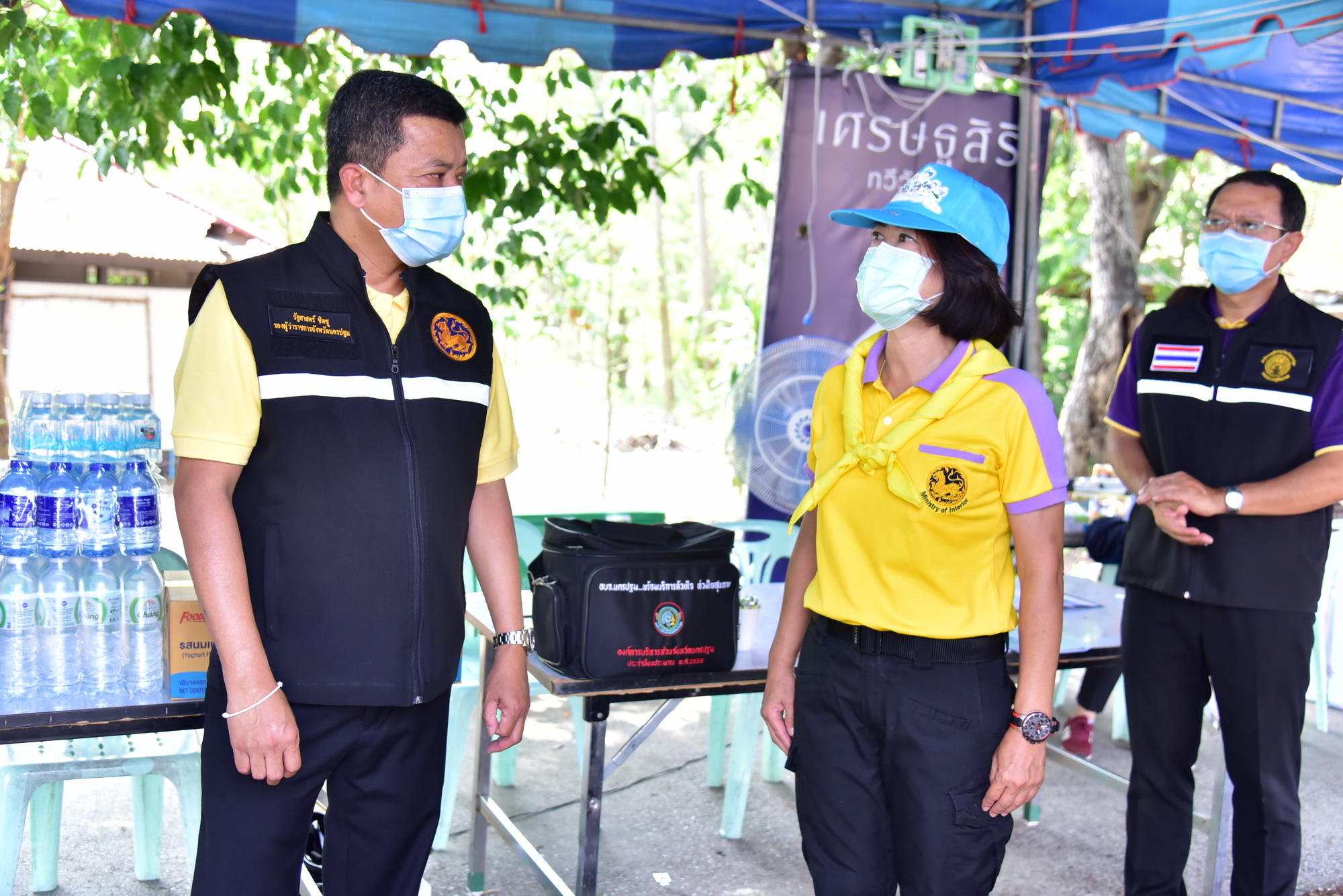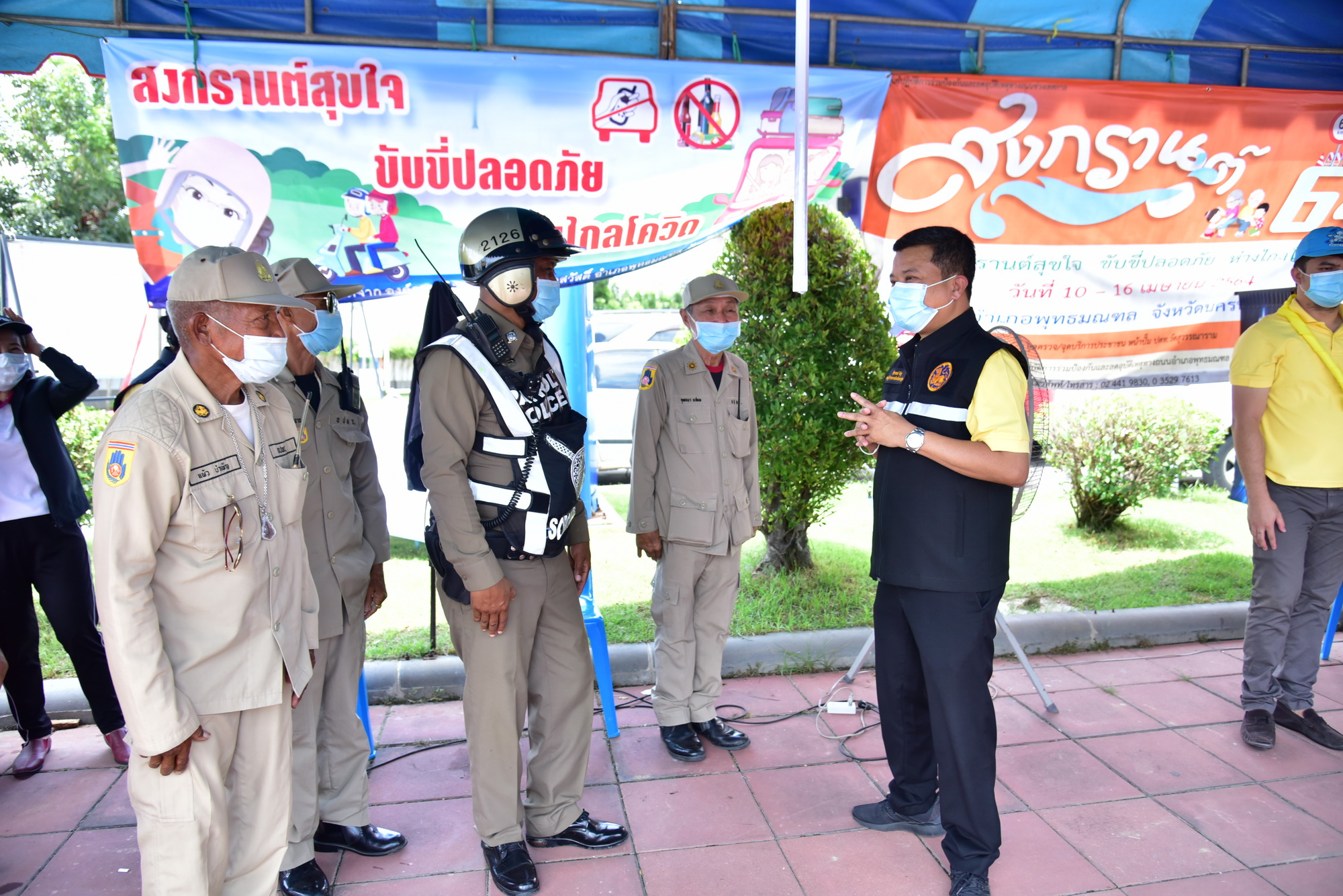 รองผู้ว่าราชการจังหวัดนครปฐม ให้กำลังใจเจ้าหน้าที่ประจำด่านตรวจ ในช่วงเทศกาลสงกรานต์ กระตุ้นเตือนประชาชนให้สวมหมวกนิรภัย ไม่ขับรถเร็ว และเมาไม่ขับ ควบคู่กับการป้องกันการแพร่ระบาโรคติดเชื้อไวรัสโคโรนา 2019