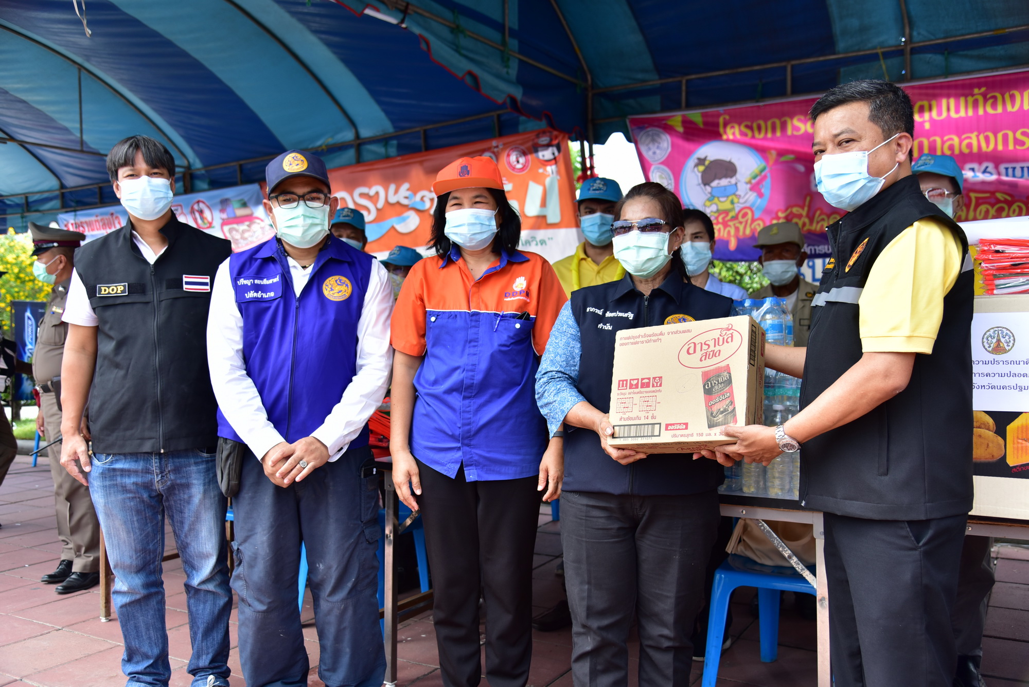 วันที่ 13 เมษายน 2564 นายรัฐศาสตร์ ชิดชู รองผู้ว่าราชการจังหวัดนครปฐม ลงพื้นที่ตรวจเยี่ยมพร้อมมอบสิ่งของเพื่อเป็นเป็นขวัญและกำลังใจให้กับเจ้าหน้าที่ประจำด่านตรวจหลัก ณ บริเวณแยกทางเข้าวัดงิ้วราย ต.งิ้วราย อ.นครชัยศรี, บริเวณหน้าปั้ม ปตท.วัดสุวรรณาราม อ.พุทธมณฑล, หน้าพุทธมณฑล และจุดตรวจบริเวณหมวดการทางท่าตำหนัก อ.นครชัยศรี โดยมี นายอำเภอ สาธารณสุขอำเภอ เจ้าหน้าที่ เจ้าหน้าที่ประจำด่านตรวจ ฝ่ายปกครอง กำนัน ผู้ใหญ่บ้าน เจ้าหน้าที่เทศบาล อปพร. อสม. ร่วมปฏิบัติหน้าที่ประจำด่านตรวจ