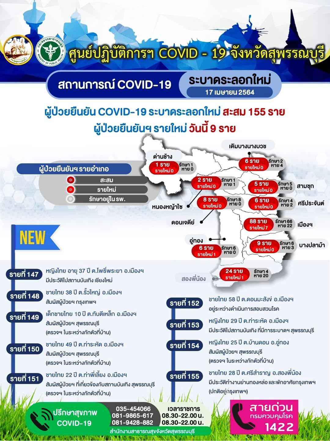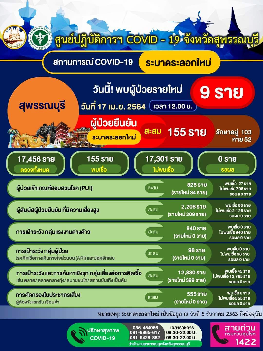สุพรรณบุรี สถานการณ์น่าห่วงพบผู้ติดเชื้อเพิ่มอีก9 ผู้ว่าสั่งงานบุญห้ามจัดเลี้ยง