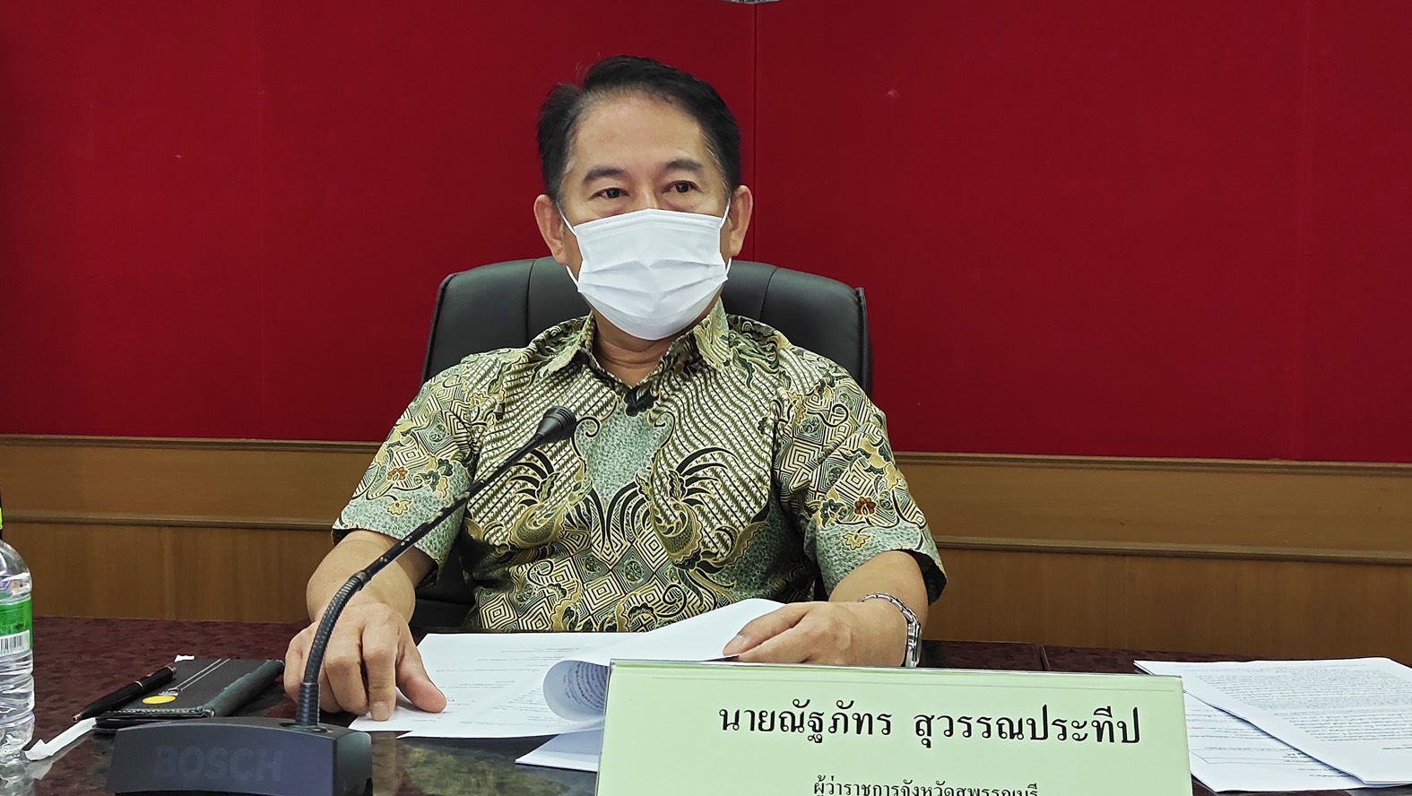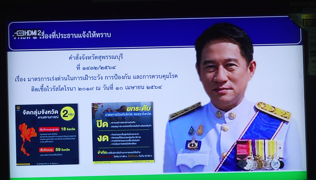 จังหวัดสุพรรณบุรีวันที่ 17 เมษายน 2564 นายณัฐภัทร สุวรรณประทีป ผู้ว่าราชการจังหวัดสุพรรณบุรี ได้เชิญคณะกรรมการโรคติดต่อจังหวัดสุพรรณบุรี และคณะกรรมการศูนย์ปฏิบัติการควบคุมโรค ประชุมด่วน ที่ห้องประชุมศาลากลางจังหวัดสุพรรณบุรี โดยมีนายนพฤทธิ์ ศิริโกศล นายชูชีพ พงษ์ไชยรองผู้ว่าราชการจังหวัด นายสรชัด สุจิตต์ สส.สุพรรณบุรี พรรคชาติไทยพัฒนา กรรมาธิการโรคติดต่อสภาผู้แทนราษฎร นายวัฒนา ยั่งยืน ปลัดจังหวัดสุพรรณบุรี รองนายแพทย์สาธารณสุขจังหวัด ร่วมประชุม เพื่อติดตามสถานการณ์การแพร่ระบาดของไวรัส covid-19 และออกมาตรการควบคุมการแพร่ระบาดในพื้นที่จังหวัดสุพรรณบุรี หลังจาก ศบค.ได้ยกให้สุพรรณบุรี เป็นหนึ่งใน 18 จังหวัดเป็นพื้นที่การแพร่ระบาดอยู่ในขั้นสีแดง
