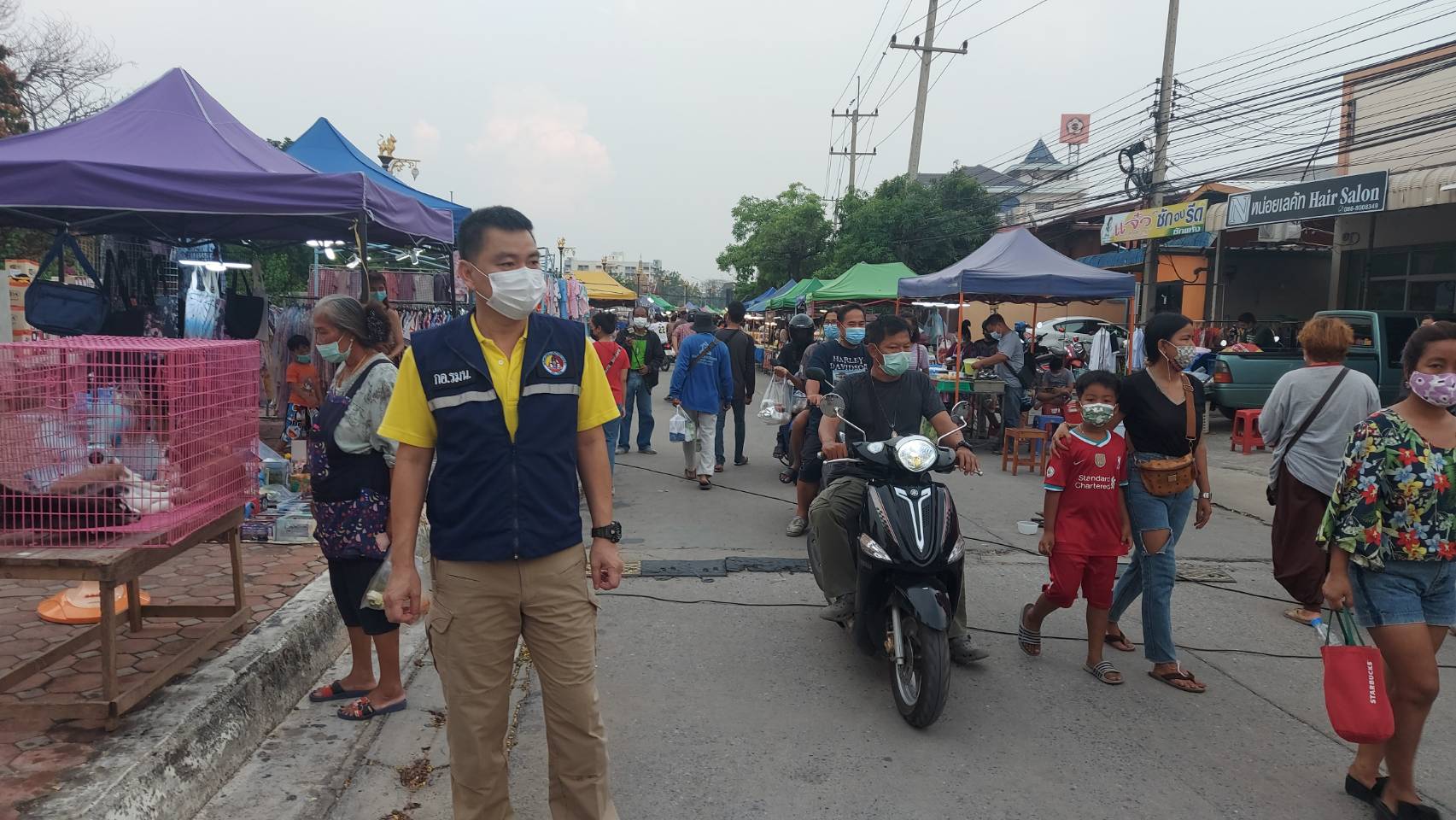1. เน้นย้ำให้ผู้จำหน่ายสินค้าในตลาดทุกคนสวมหน้ากากอนามัย