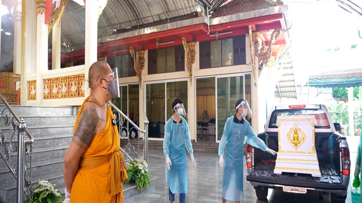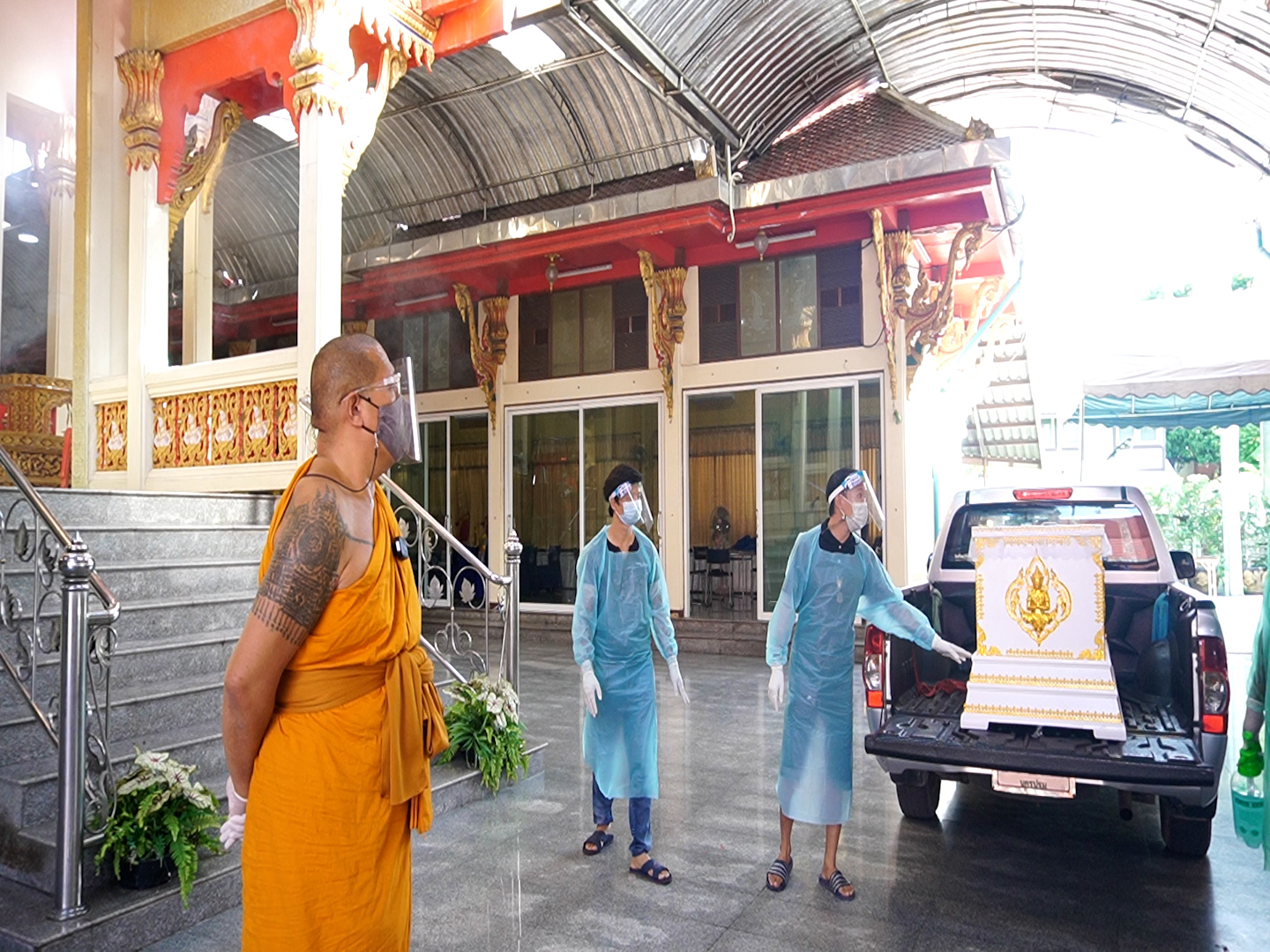 เจ้าหน้าที่โรงพยาบาลนครปฐม ใส่ชุดป้องกันได้นำร่างของนางประนอม อายุ 80 ปี ชาวอำเภอสามพราน เสียชีวิตเมื่อวันที่ 17 เมษายน โดยบรรจุในโลงศพที่มีการห่อหุ้มแบบมิดชิดใส่ท้ายรถกระบะนำมาที่ฌาปนสถาน วัดไผ่ล้อม เมื่อมาถึงเจ้าหน้าที่วัดไผ่ล้อมได้มีการพ่นยาฆ่าเชื้อทุกกระบวนการก่อนขึ้นเตาเผา โดยมีลูกหลานและญาติของนางประนอม จำนวน 10 คนเดินทางมาร่วมส่งวิญญาณเป็นครั้งสุดท้าย โดยมี พระครูปลัดสิทธิวัฒน์ หลวงพี่น้ำฝน เจ้าอาวาสวัดไผ่ล้อม เป็นประธานในการประชุมเพลิงแบบรวบรัดรวดเดียวจบภายใน30นาที ด้วยมาตรการการป้องกันการติดเชื้อและแพร่กระจายของไวรัสโควิด-19 ขั้นสูงสุด เนื่องจากเป็นช่วงที่มีการแพร่ระบาดอย่างหนักในรอบที่ 3โดยช่วงก่อนการทำพิธีมาปนกิจ หลวงพี่น้ำฝน ได้สั่งการให้เจ้าหน้าที่ของวัดไผ่ล้อม ได้ทำการเร่งฉีดยาฆ่าเชื้อในทุกจุดรวมถึงนำเครื่องพ่นไอหมอกควันสำหรับฆ่าเชื้อแบบละเอียดติดตั้งบริเวณหน้าฌาปนสถานทางขึ้นสู่เตาเผา พร้อมตั้งจุดคัดกรองให้ญาติและเจ้าหน้าที่ที่จะเข้ามาร่วมในพิธีแบบละเอียดก่อนจะเข้าสู่พื้นที่และได้นำสู่กระบวนการสวดบังสกุลและทอดผ้าก่อนทำการเผาในทันที ใช้เวลาประมาณ 30 นาทีจึงเสร็จสิ้นพิธี