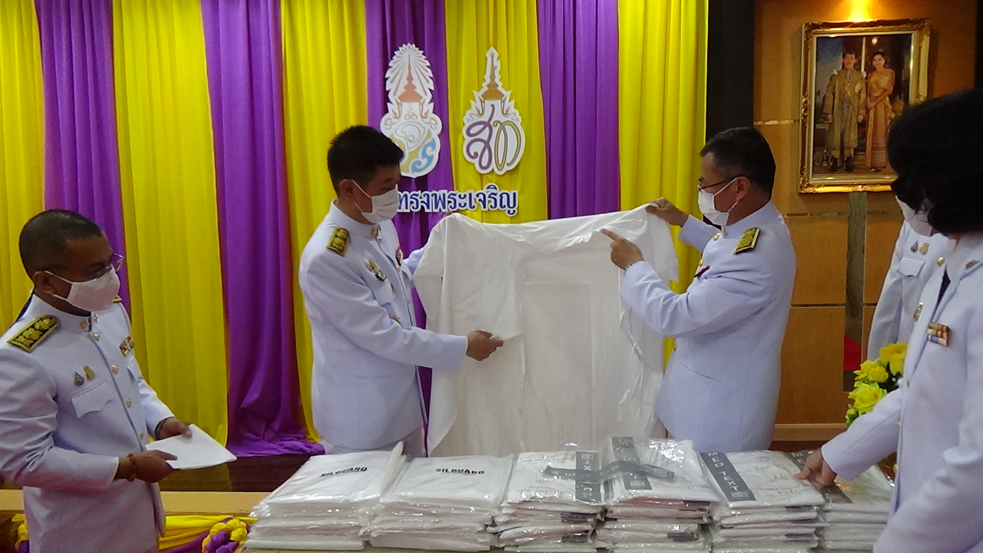 พระบาทสมเด็จพระเจ้าอยู่หัว และสมเด็จพระนางเจ้าฯ พระบรมราชินี ทรงพระกรุณาโปรดเกล้าโปรดกระหม่อมพระราชทานอุปกรณ์ทางการแพทย์ให้แก่หน่วยงานในสังกัดกระทรวงสาธารณสุขและหน่วยบริการทางการแพทย์นอกสังกัดกระทรวงสาธารณสุข เพื่อบรรเทาปัญหาการขาดแคลนอุปกรณ์ทางการแพทย์เพิ่มศักยภาพ และประสิทธิภาพในการดูแลรักษาผู้ป่วยโรคติดเชื้อไวรัสโคโรนา 2019 โดยมี นายอนุทิศ ชาญวีรกูล รองนายกรัฐมนตรีและรัฐมนตรีว่าการกระทรวงสาธารณสุข นายแพทย์เกียรติภูมิ วงศ์รจิต ปลัดกระทรวงสาธารณสุข พร้อมคณะผู้บริหารกระทรวงสาธารณสุข เข้ารับมอบอุปกรณ์ทางการแพทย์พระราชทานจากพระบาทสมเด็จพระเจ้าอยู่หัว และสมเด็จพระนางเจ้าฯ พระบรมราชินี ในวันอังคารที่ 19 มกราคม 2564 ที่ผ่านมา ณ อาคารกองกิจการในพระองค์ (สำนกงานราชเลขานุการในพระองค์) พระที่นั่งอัมพรสถาน ซึ่งกระทรวงสาธารณสุขได้ส่งมอบอุปกรณ์ทางการแพทย์ให้กับโรงพยาบาลตรัง จำนวน 3 รายการ ดังนี้ Isolation Gown จำนวน 1,500 ชุด Coverall Gown จำนวน 500 ชุด และ Reusable Isolation Gown จำนวน 1,500 ชุด
